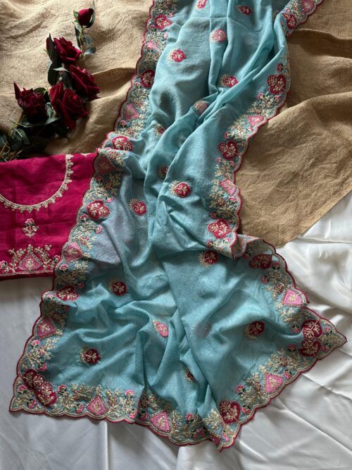 Pure Soft Chiffon Cross Stich Embroided Flowers All Over Saree