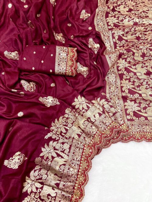 Soft & Pure Banarasi Self Weaving Silk Saree(8 Pc Set)
