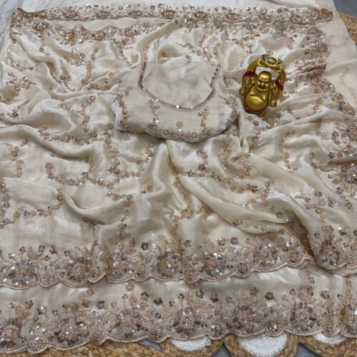 Soft Space Silk Bead Work Wedding Saree Wholesale Price