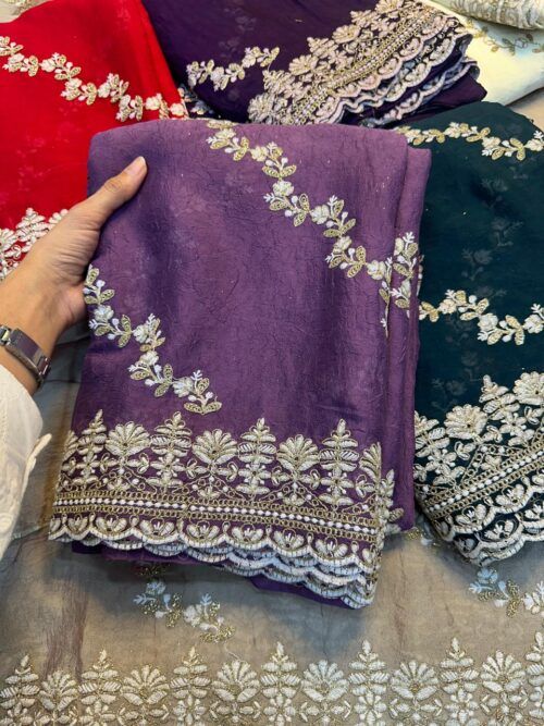 Frendy Chiffon Sequence and Zari Embroidery Work Saree(6 Pc Set)