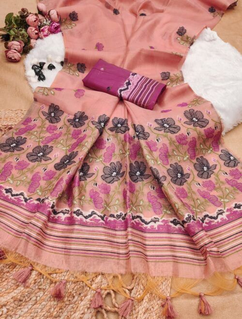 Meena Woven Floral Tissue Silk Saree Wholesale Price 6 Pc Catalog