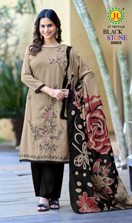Jt Black stone 38 Rayon WIth Work Dress Materials Wholesale Price 5 Pc Catalog