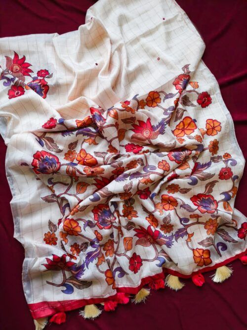 Soft Linen Digital Printed Chain Stitch Work Saree 9 Pc Catalog