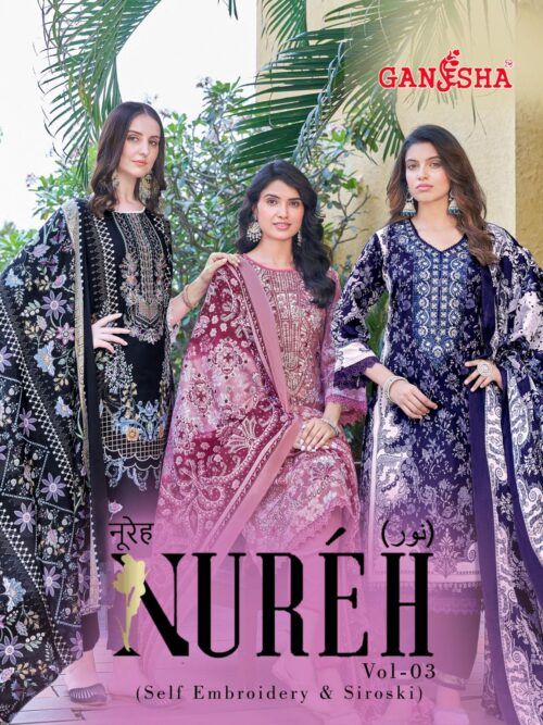Falak Nureh Vol 3 Cotton With Embroidery Work Dress Materials 8 Pc Catalog