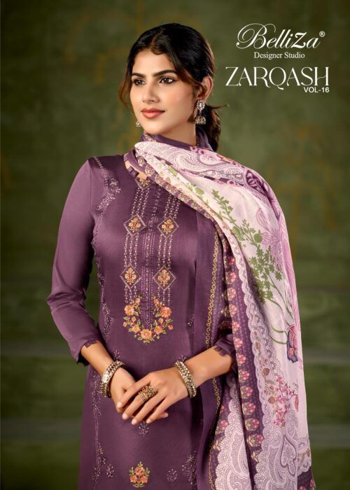 Belliza Zarqash Vol 16 Jam With Embroidery Work Dress Material Wholesale Price