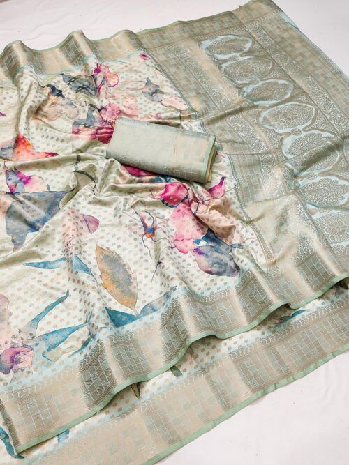 Soft Dola Banarasi Crafted Floral Digital Printed Saree Wholesale Price 4 Pc Catalog