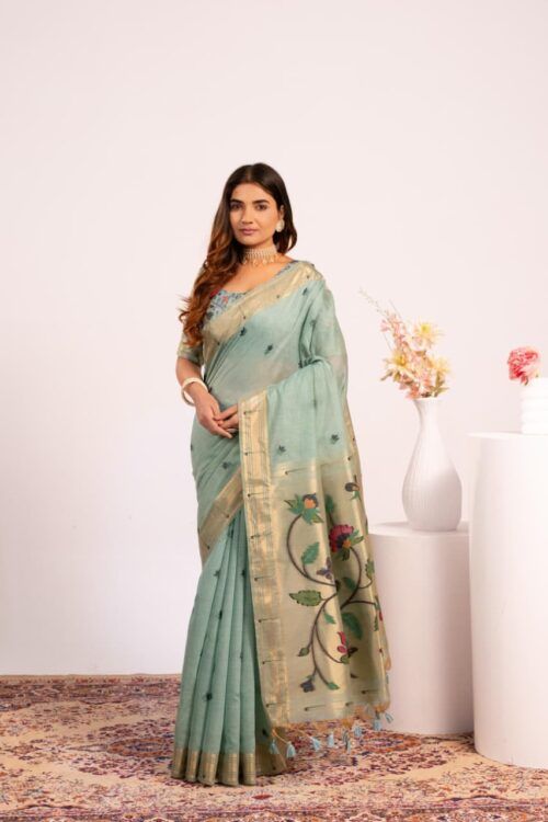 Soft Tissue Linen Silk Saree With All Over Gota-patti Weaves Wholesale price 5 Pc