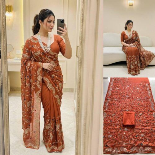Soft Space Silk Sequance Zari Embroidery Work Saree Wholesale Price 4 Pc Catalog