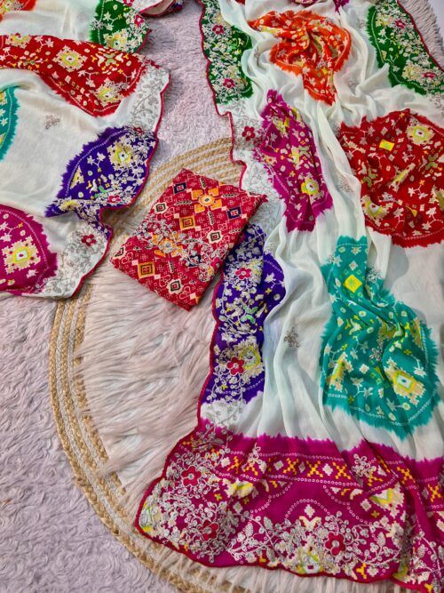 Pure Premium Chinon Patola Print Saree(2 Pc Set)