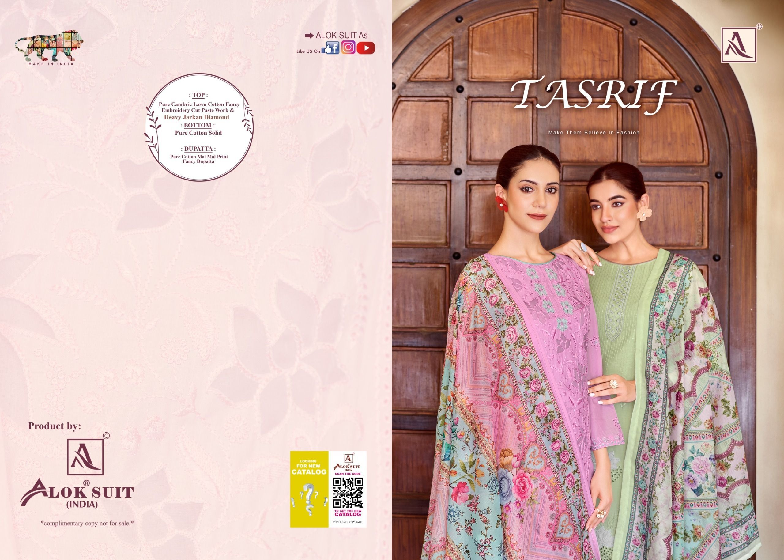 Alok Suit Tasrif Pure Cambric Cotton Dress Materials 6 Pc Catalog