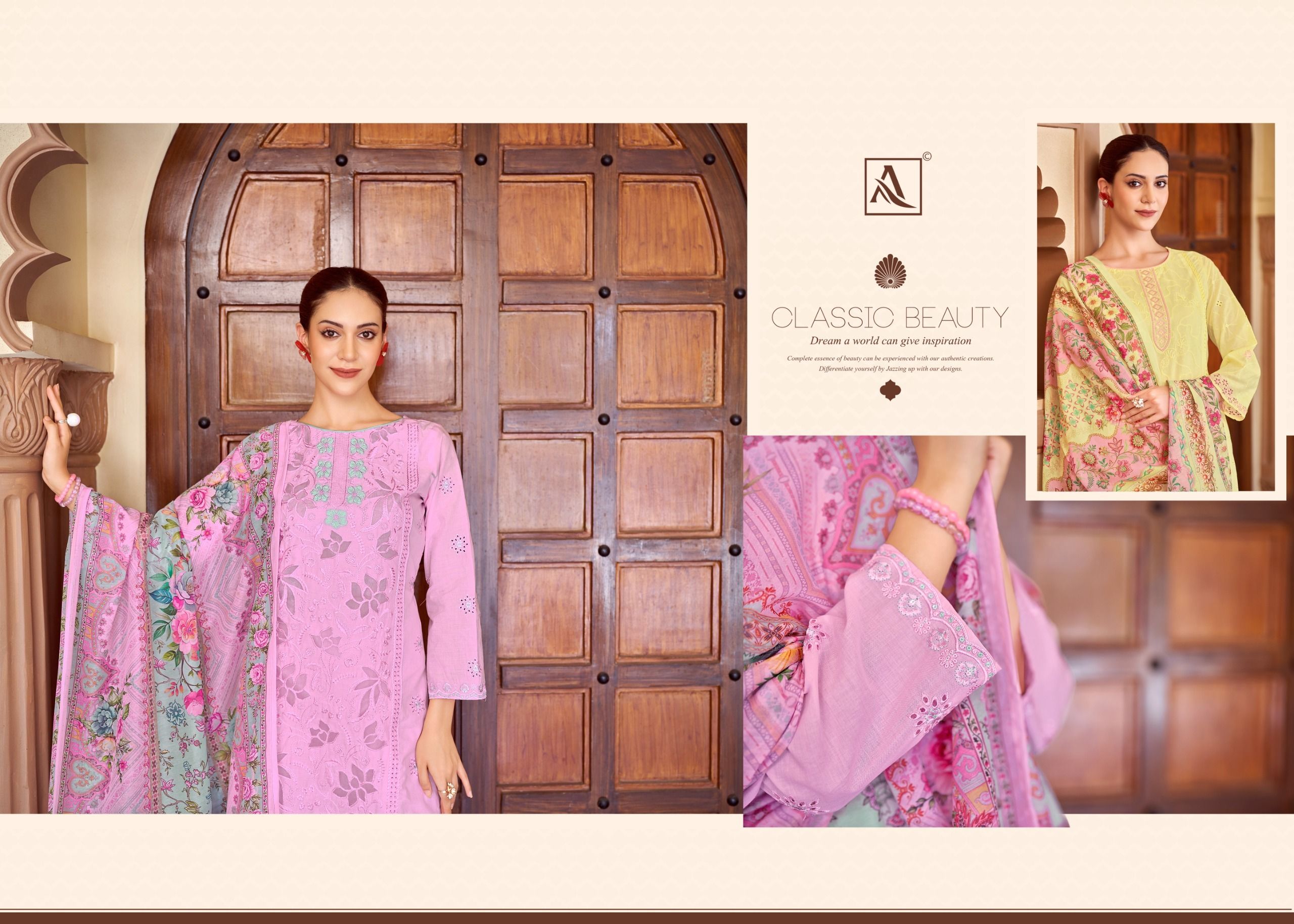 Be the first to review “Alok Suit Tasrif Pure Cambric Cotton Dress Materials 6 Pc Catalog”