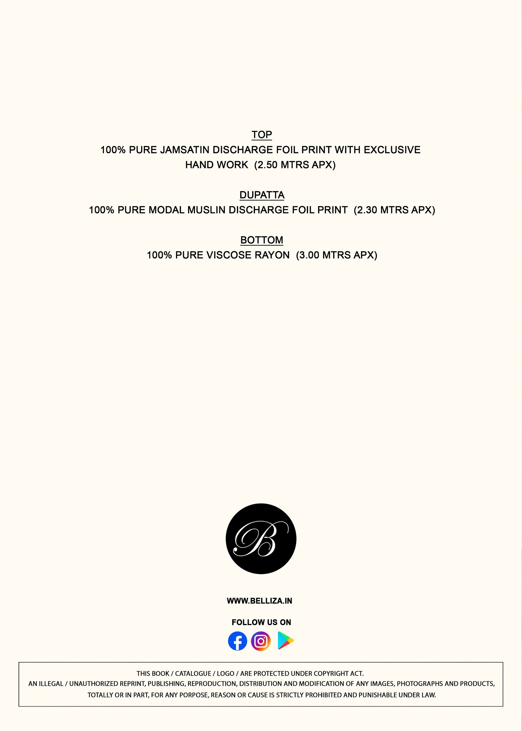 | Fabric Description | 100% Pure Jam Cotton Discharge Foil Print With Exclusive Heavy Handwork (2.50 Mtrs Apx)