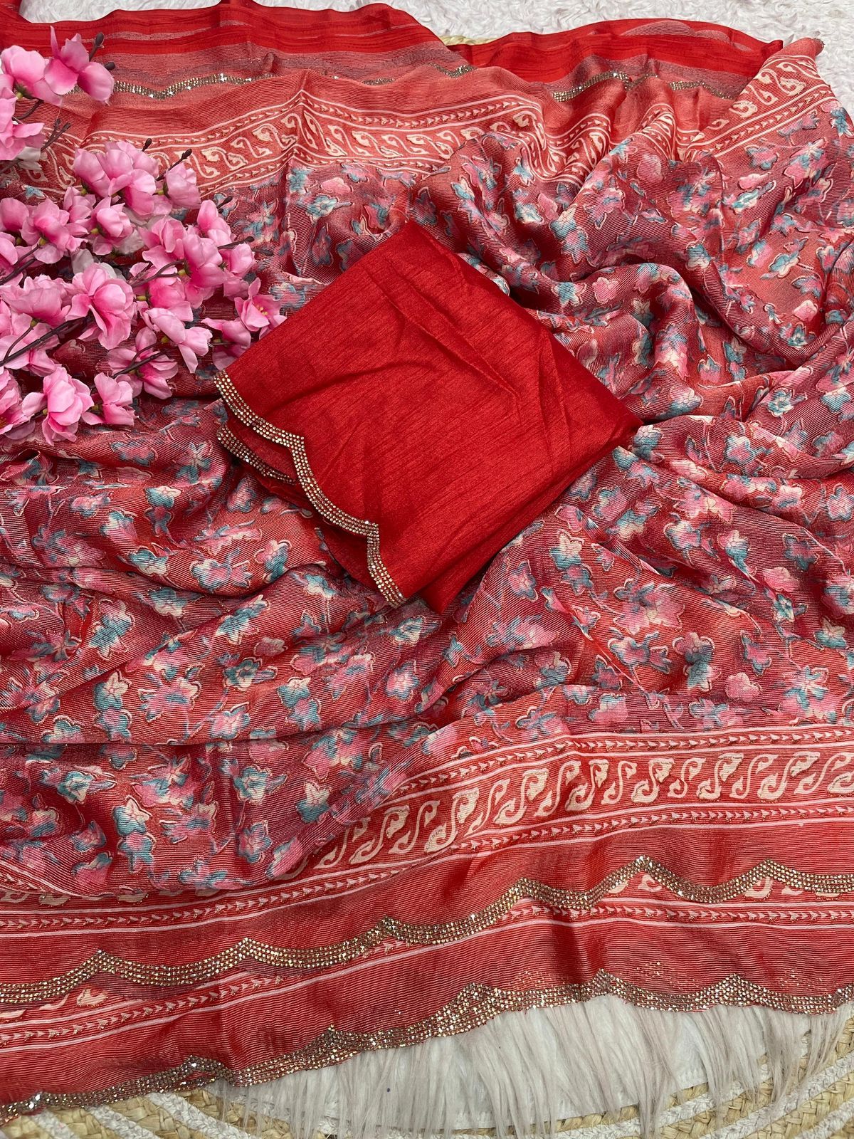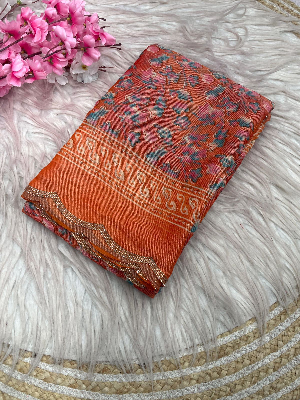 Organza is a fabric cultivated from organza silk. It’s one of the most stylish saris, perfect for summer.