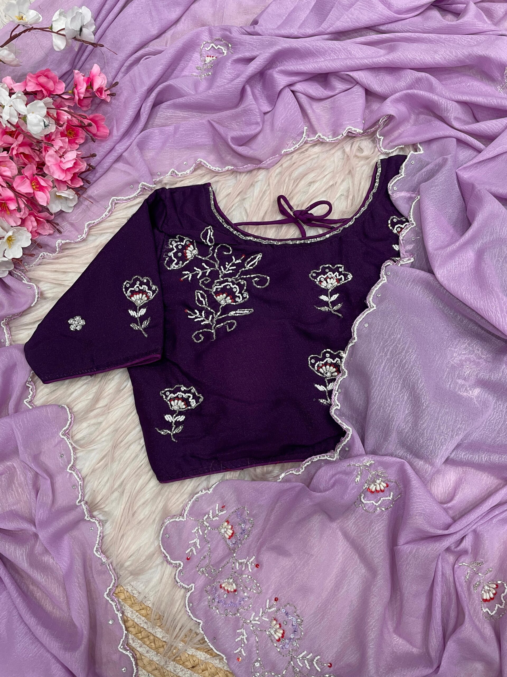 | Blouse: | Chiffon Crush Fabric With khatli Work ( Stich blouse 38-42) |