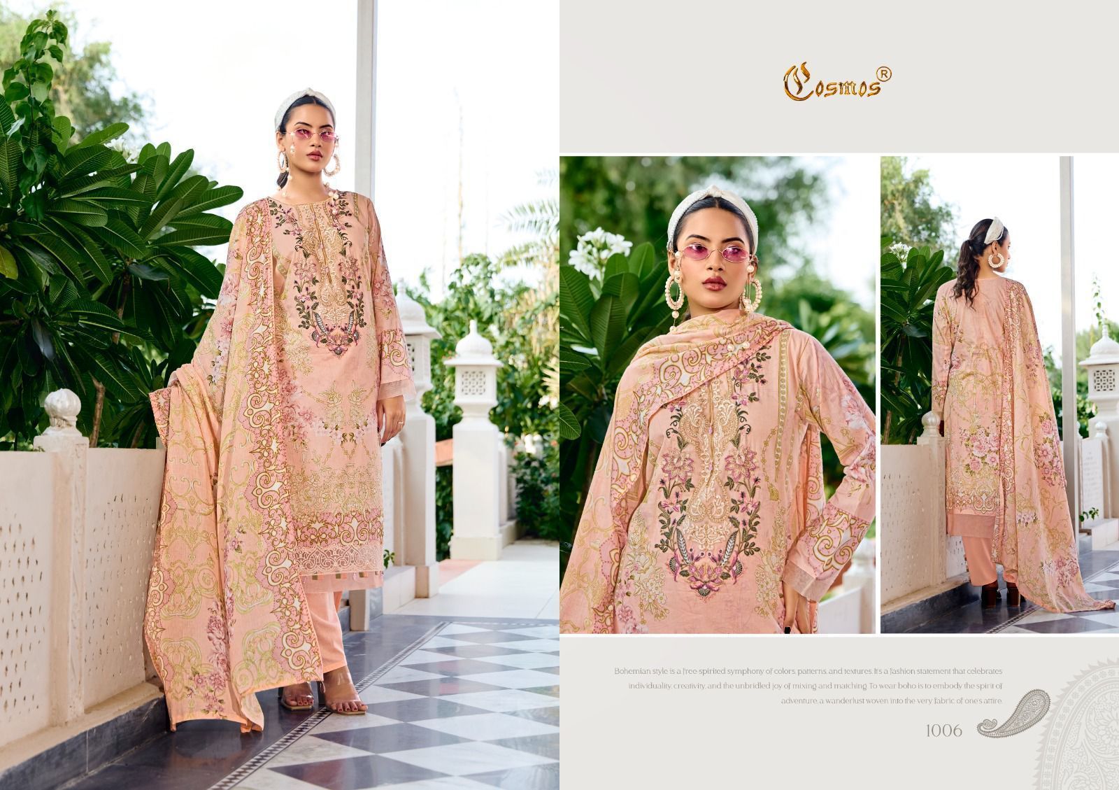 Cosmos Fashion Jazmin Vol 1 Lawn Cotton Patch Work Dress Materials