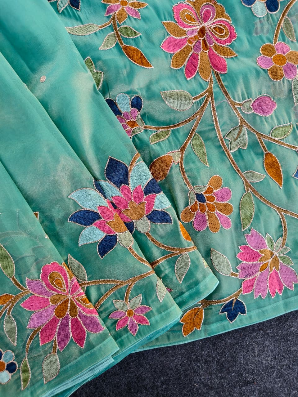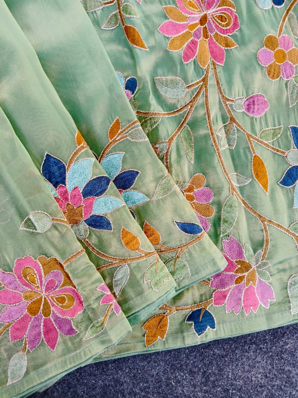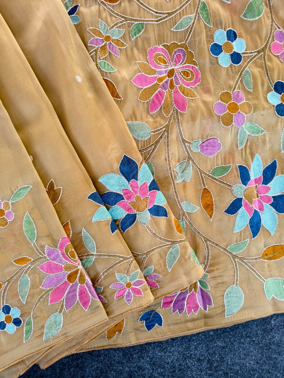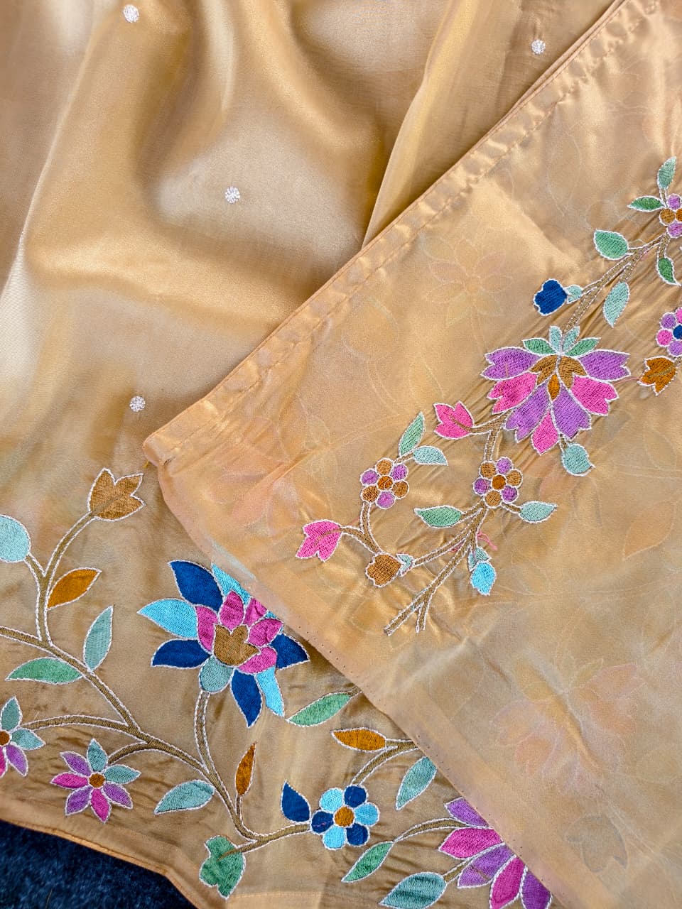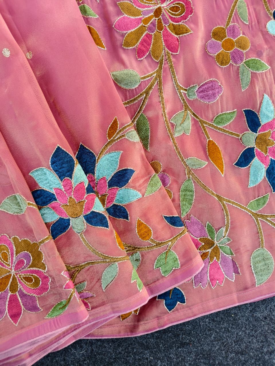 Work: Premium multicolor thread embroidery (floral vines)