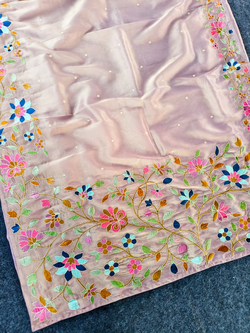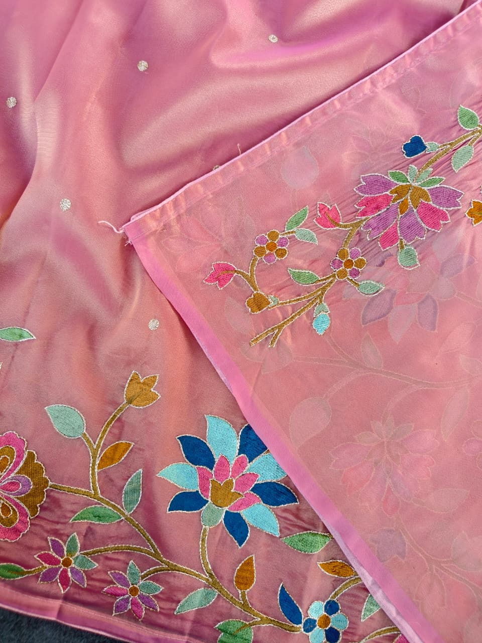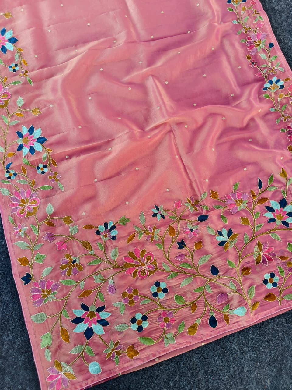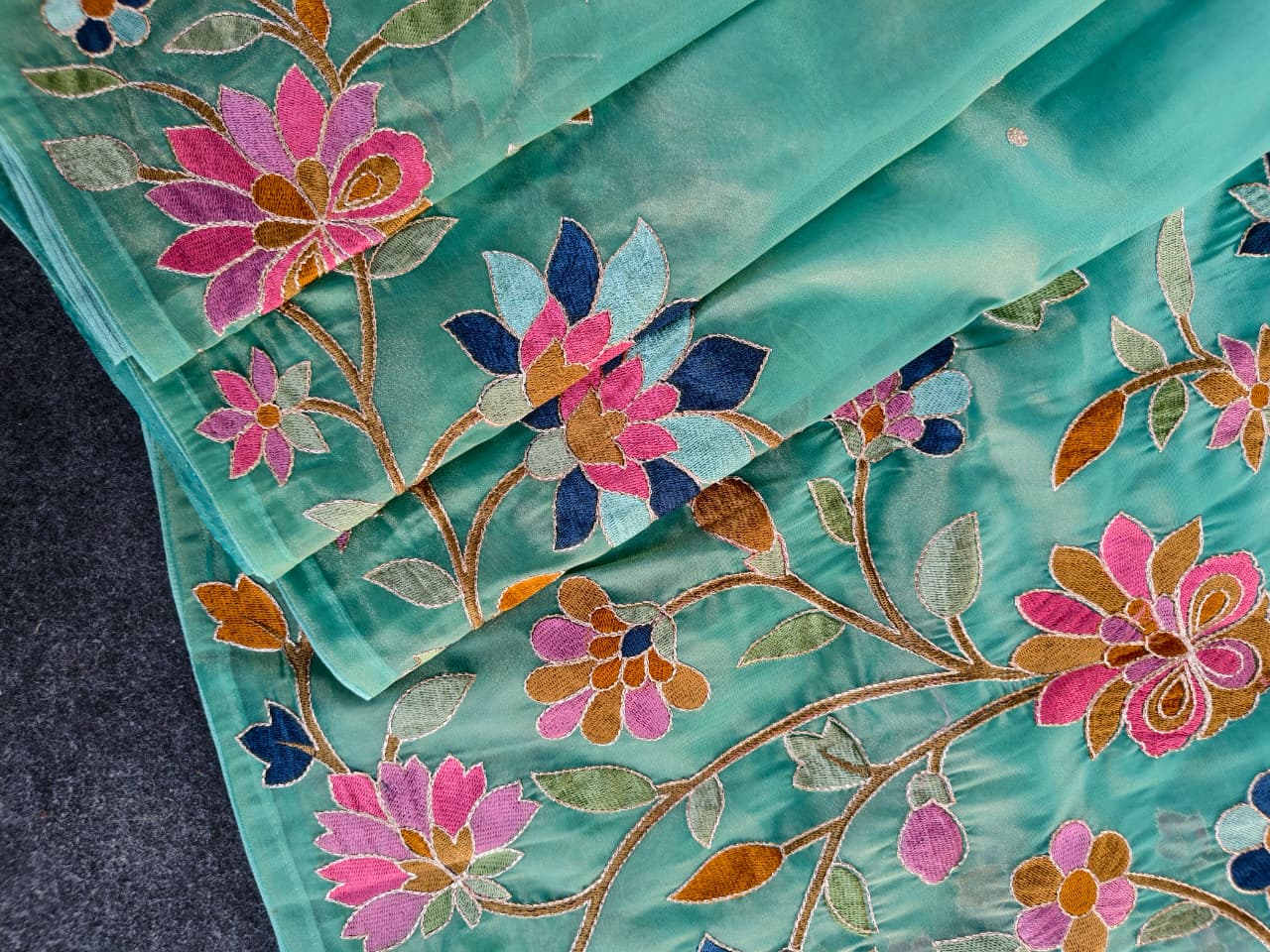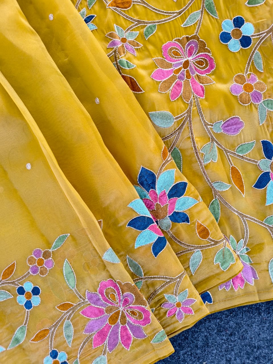 Work: Premium multicolor thread embroidery (floral vines)