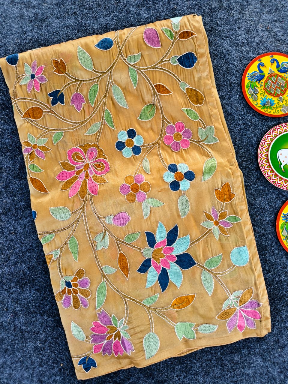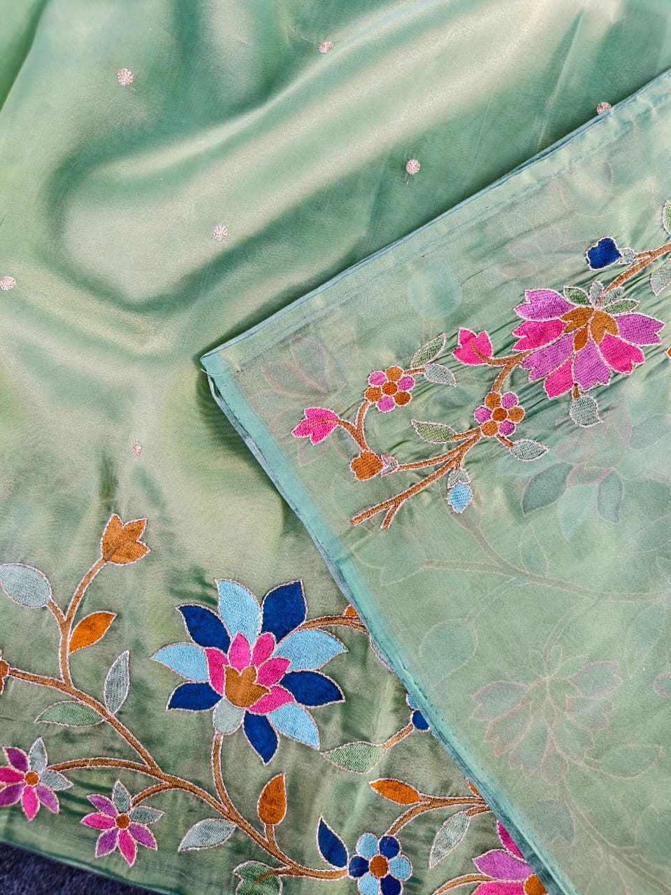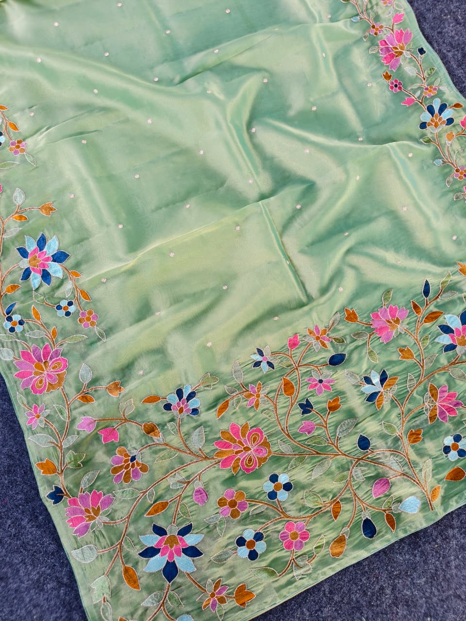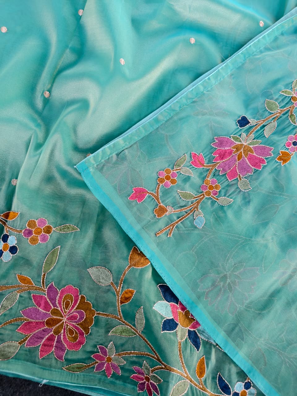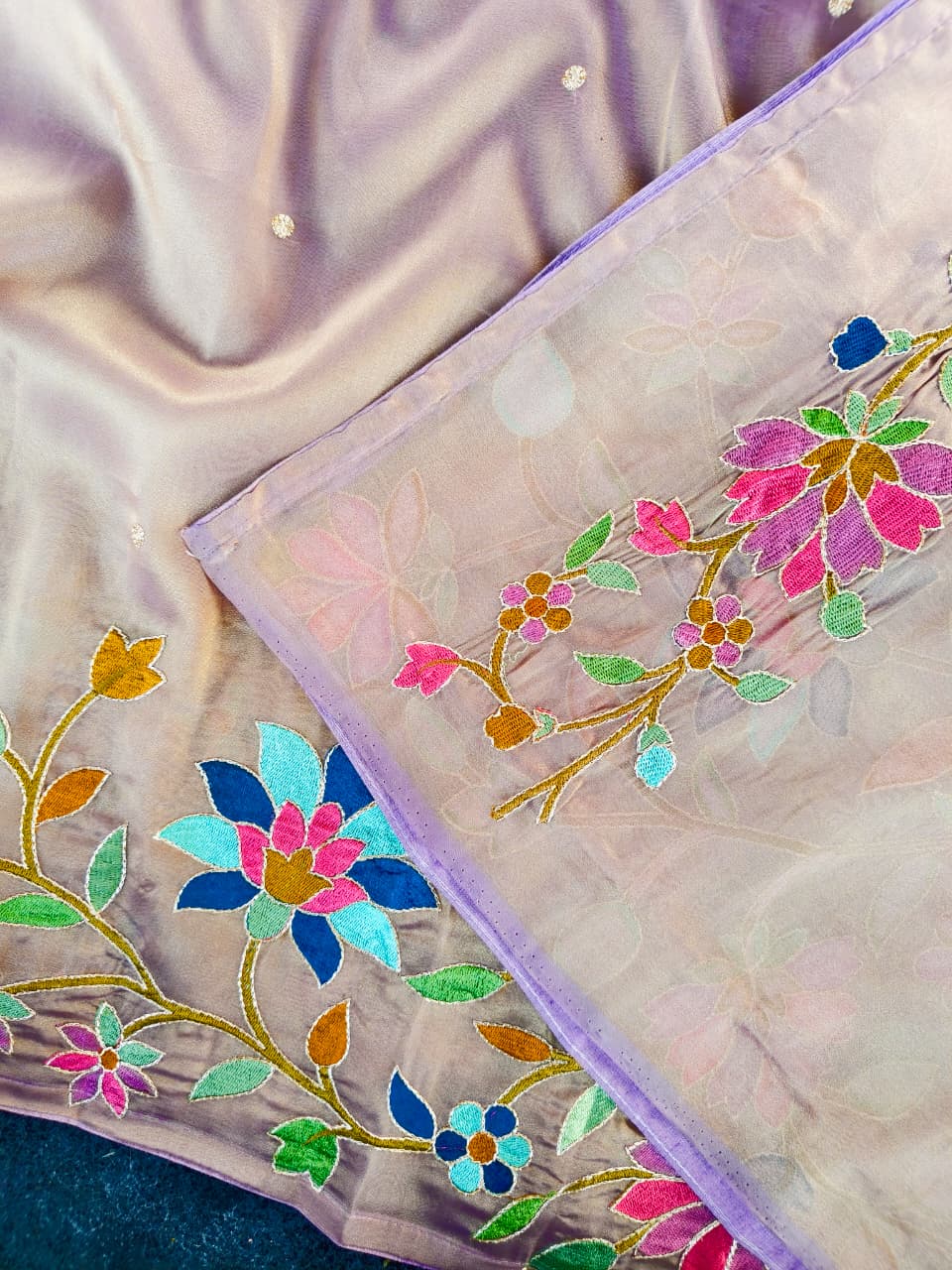 Work: Premium multicolor thread embroidery (floral vines)