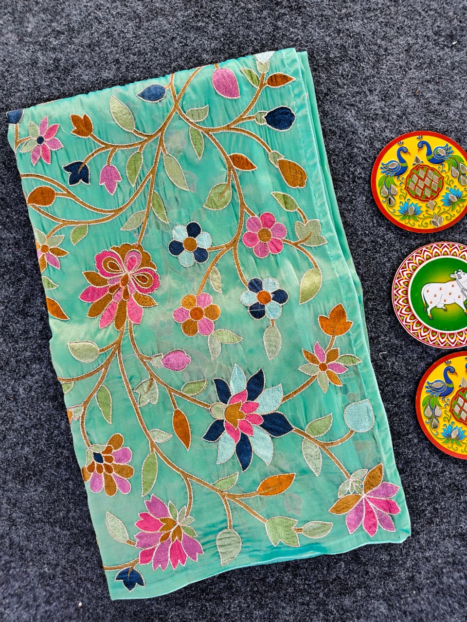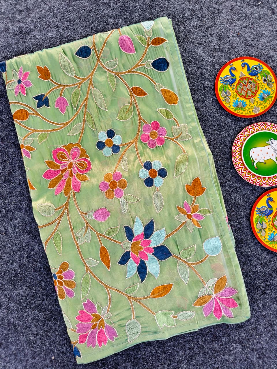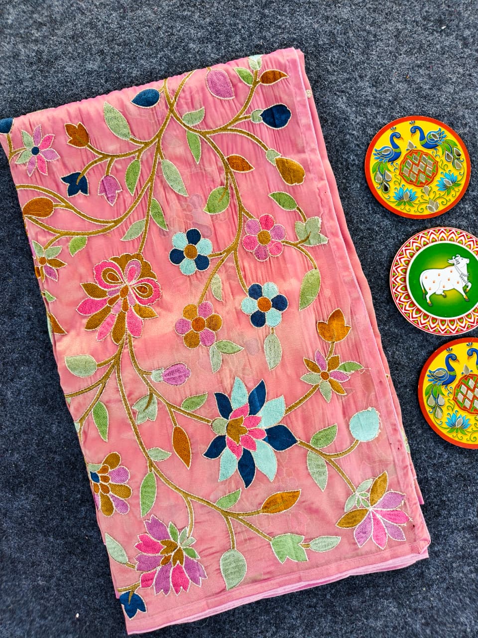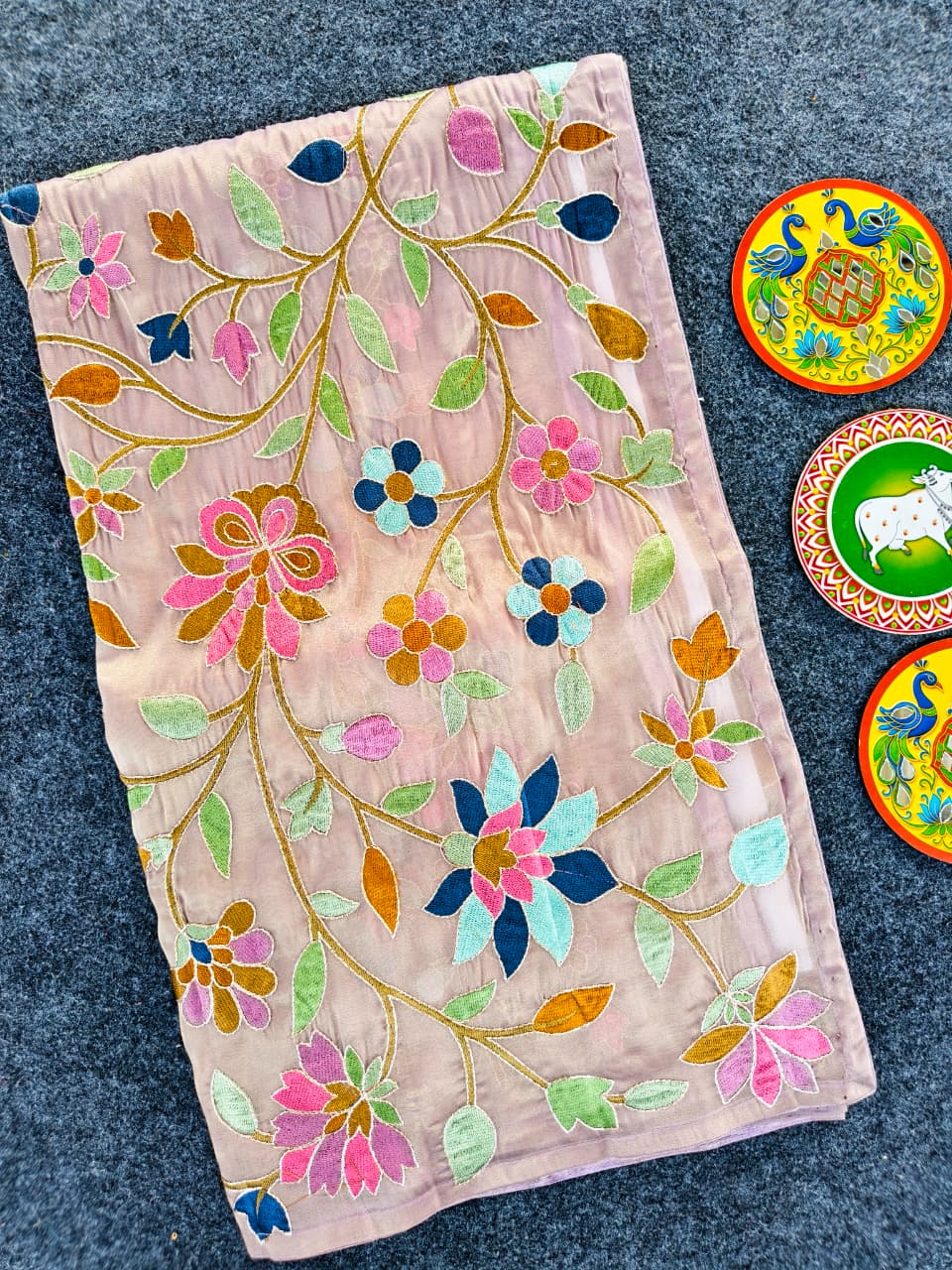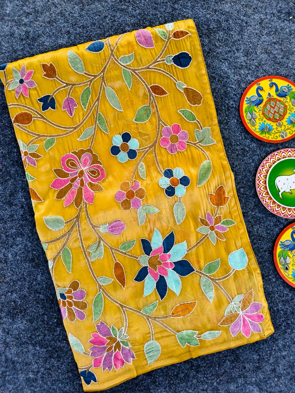 Work: Premium multicolor thread embroidery (floral vines)