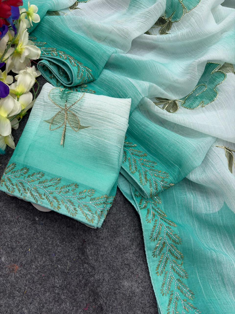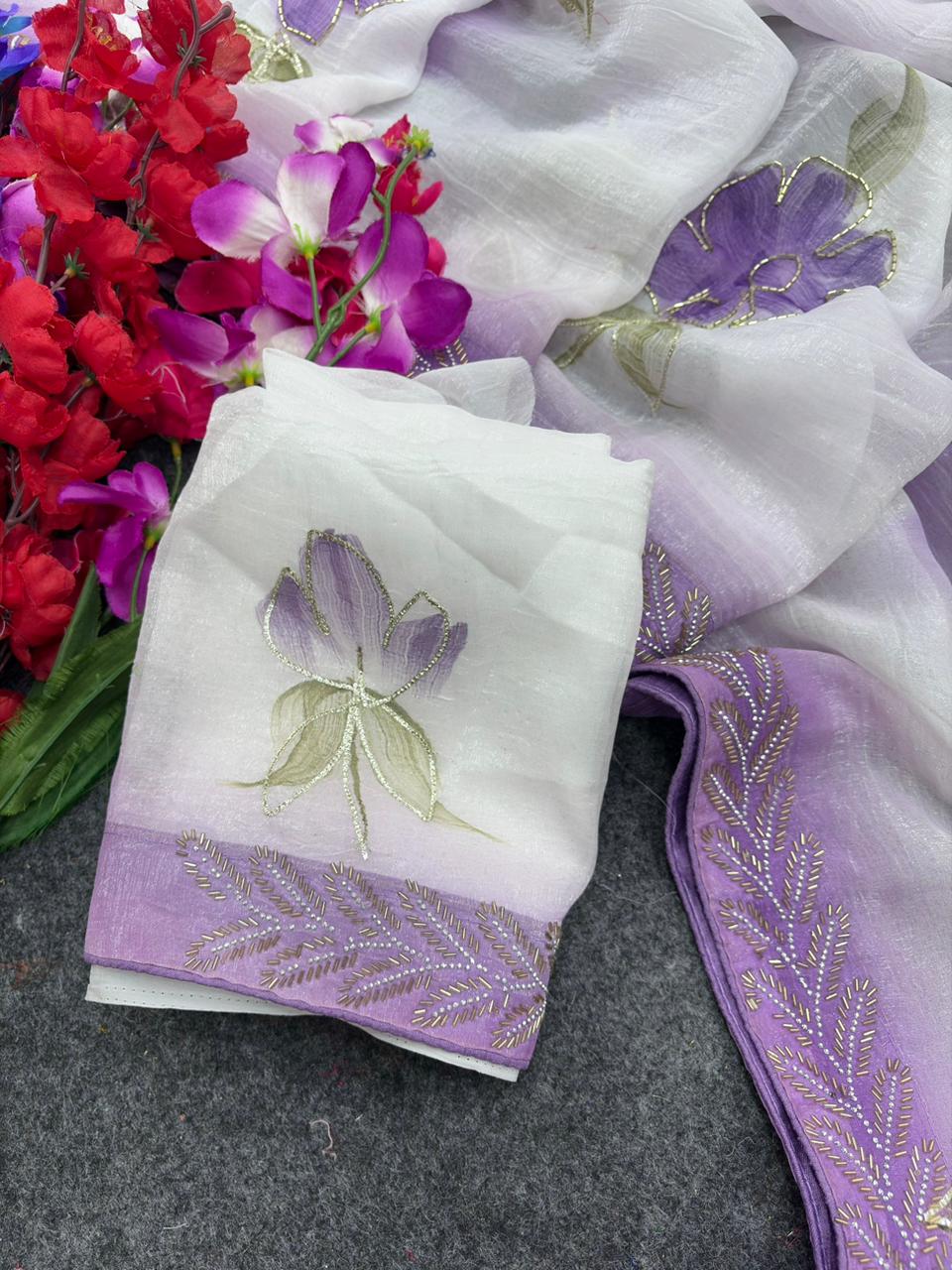 Organza is a fabric cultivated from organza silk. It’s one of the most stylish saris, perfect for summer.