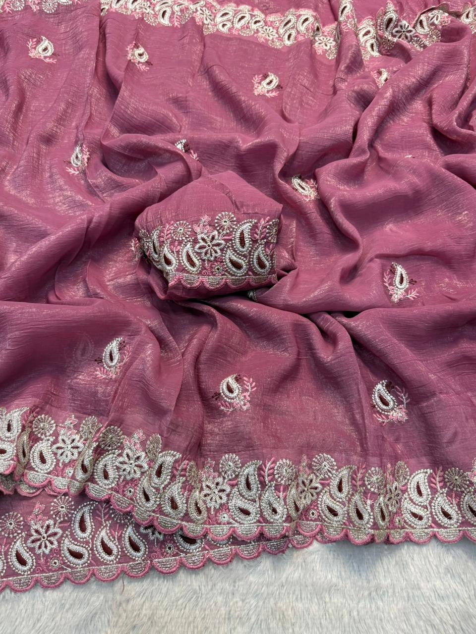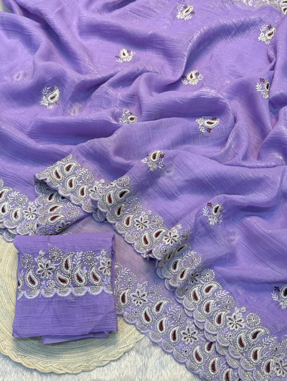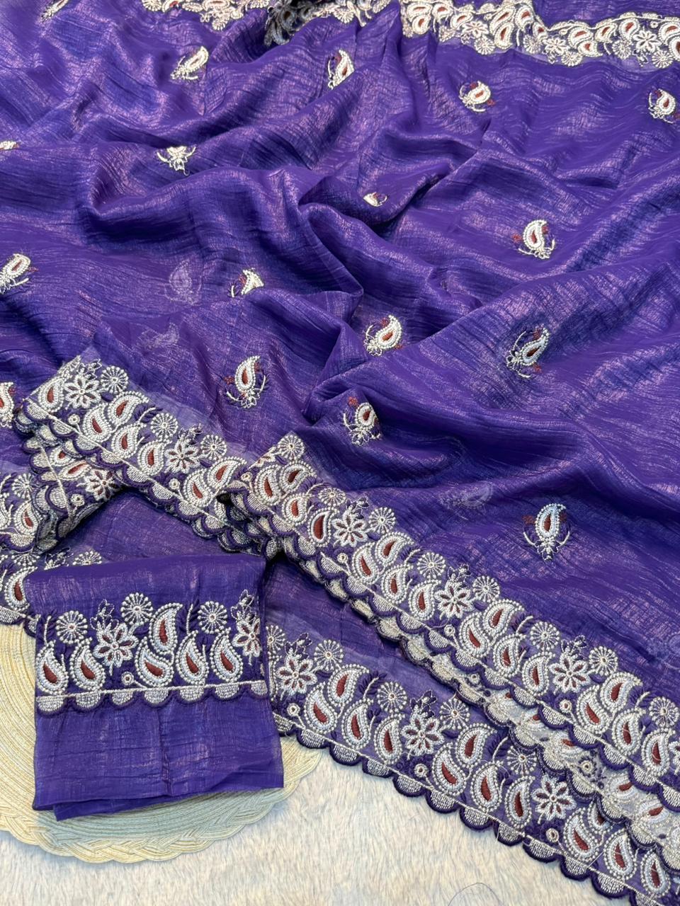 Fabric:  Crunchy Silk Fabric Saree With Fancy Thread & Multi Embroidery Work Saree & Fancy Embroidery Work Blouse