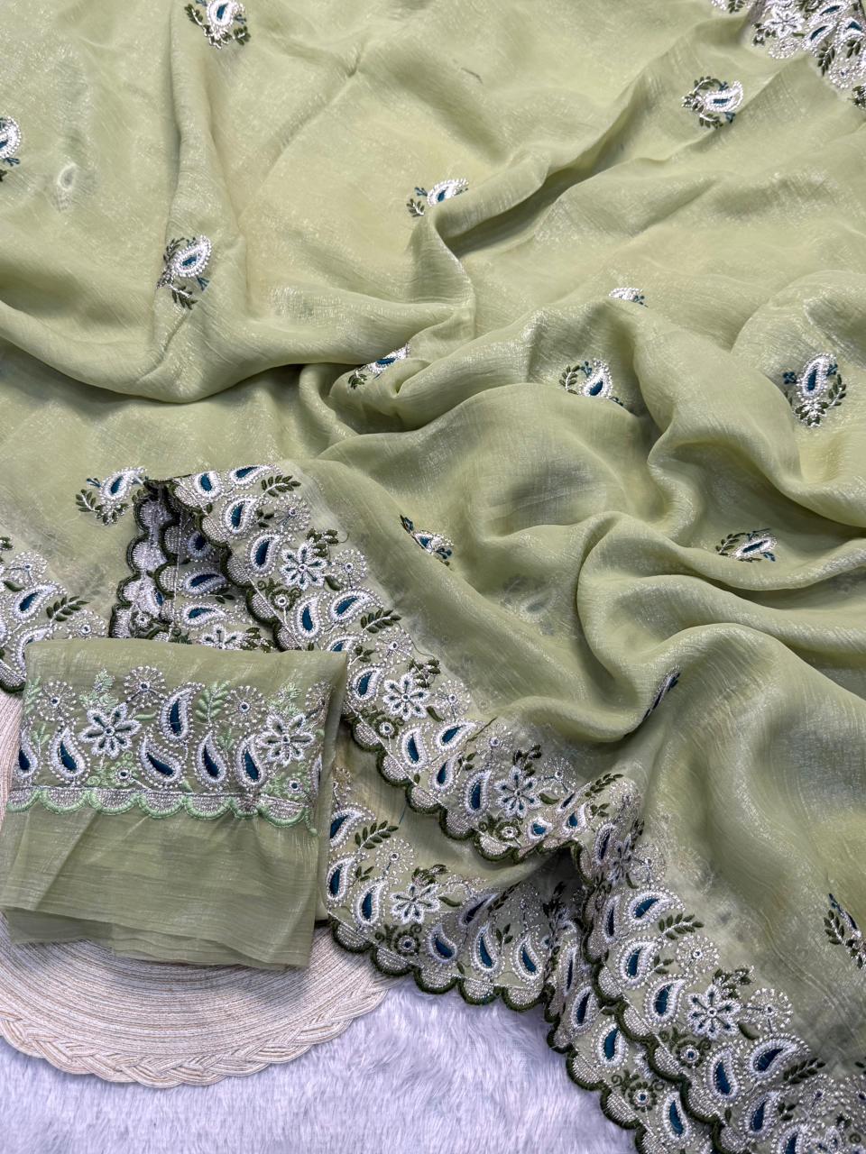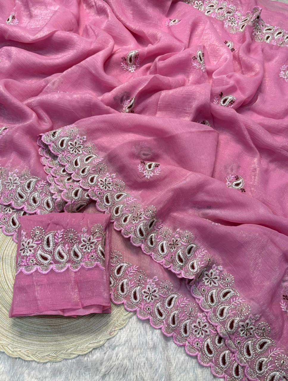 Organza is a fabric cultivated from organza silk. It’s one of the most stylish saris, perfect for summer.