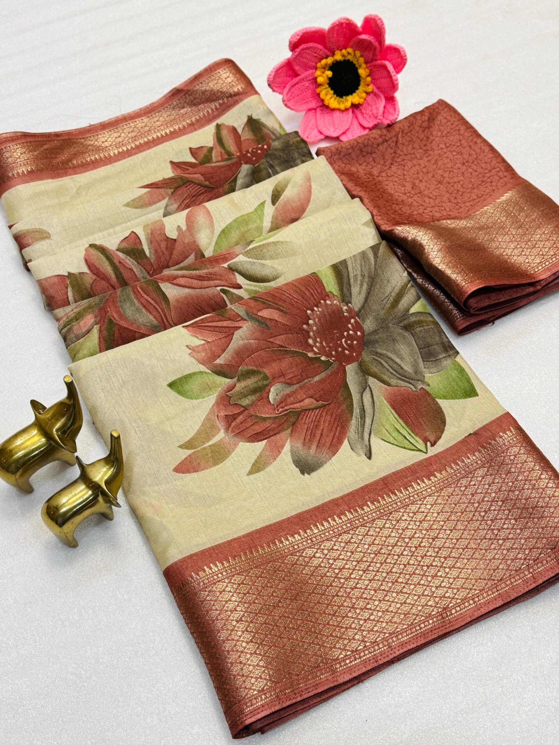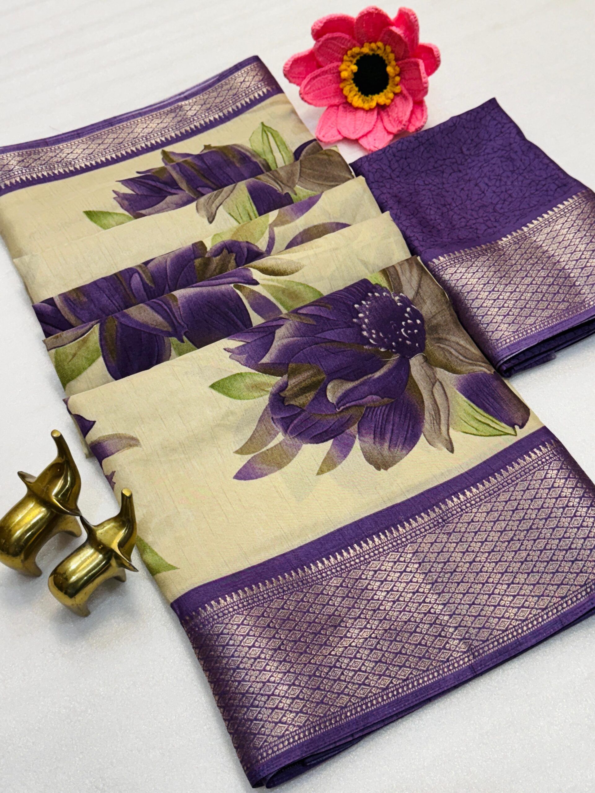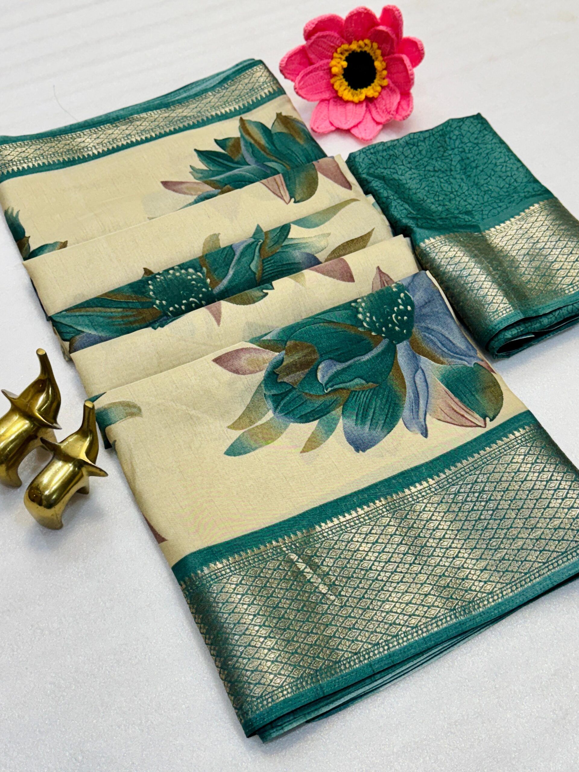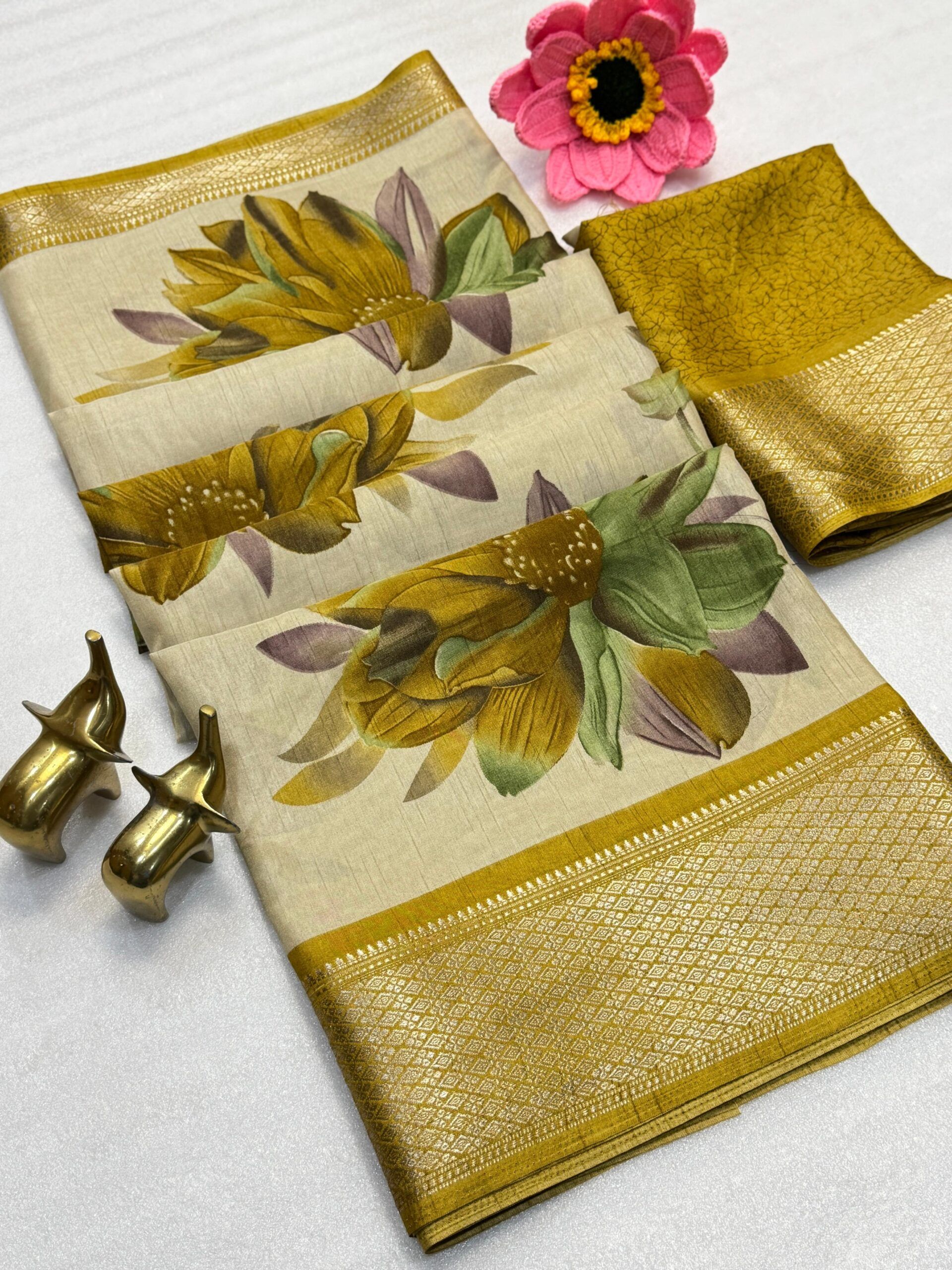 Dola Silk Print beautiful Floral Saree Wholesale Price 4 Pc Catalog