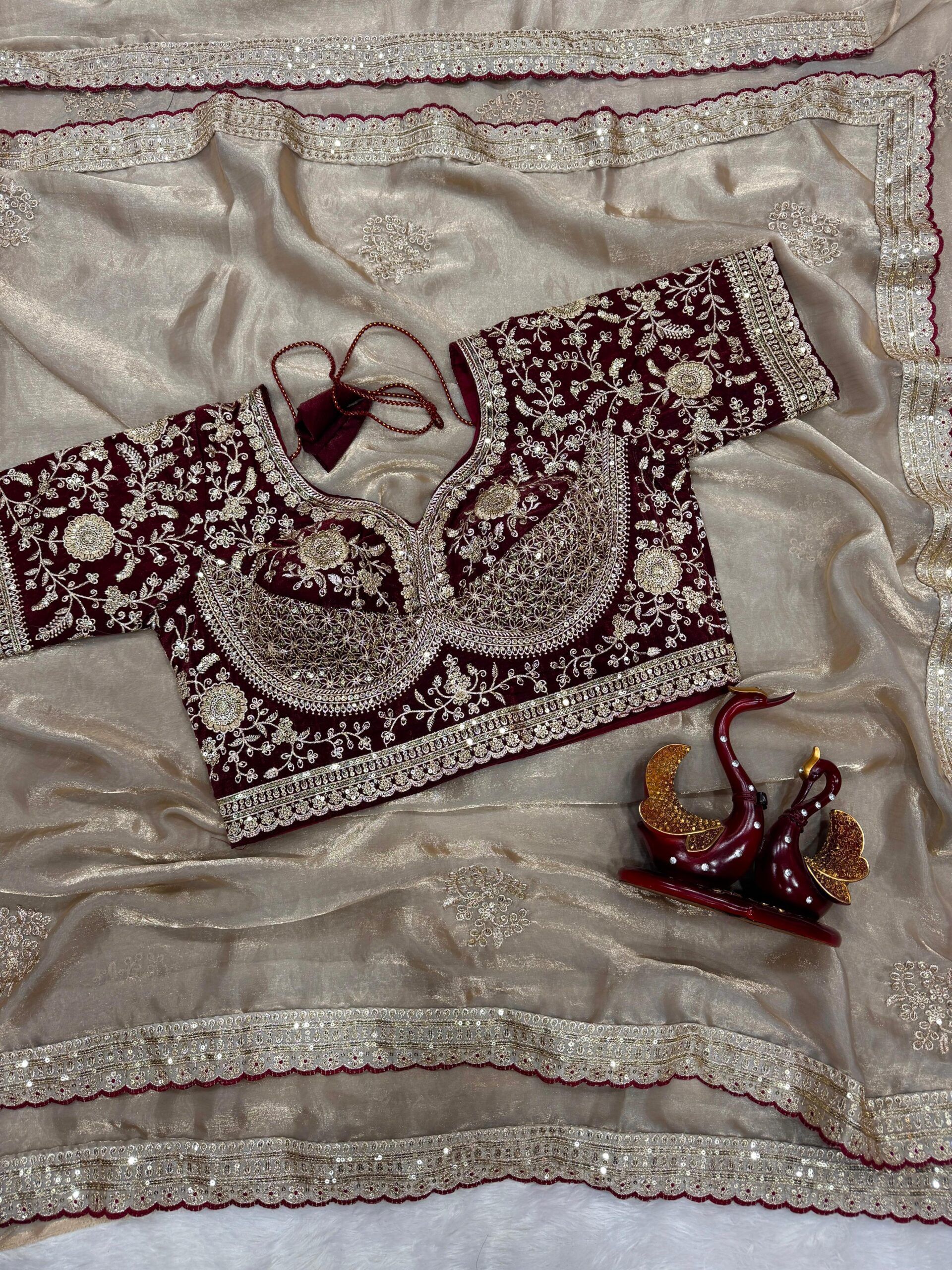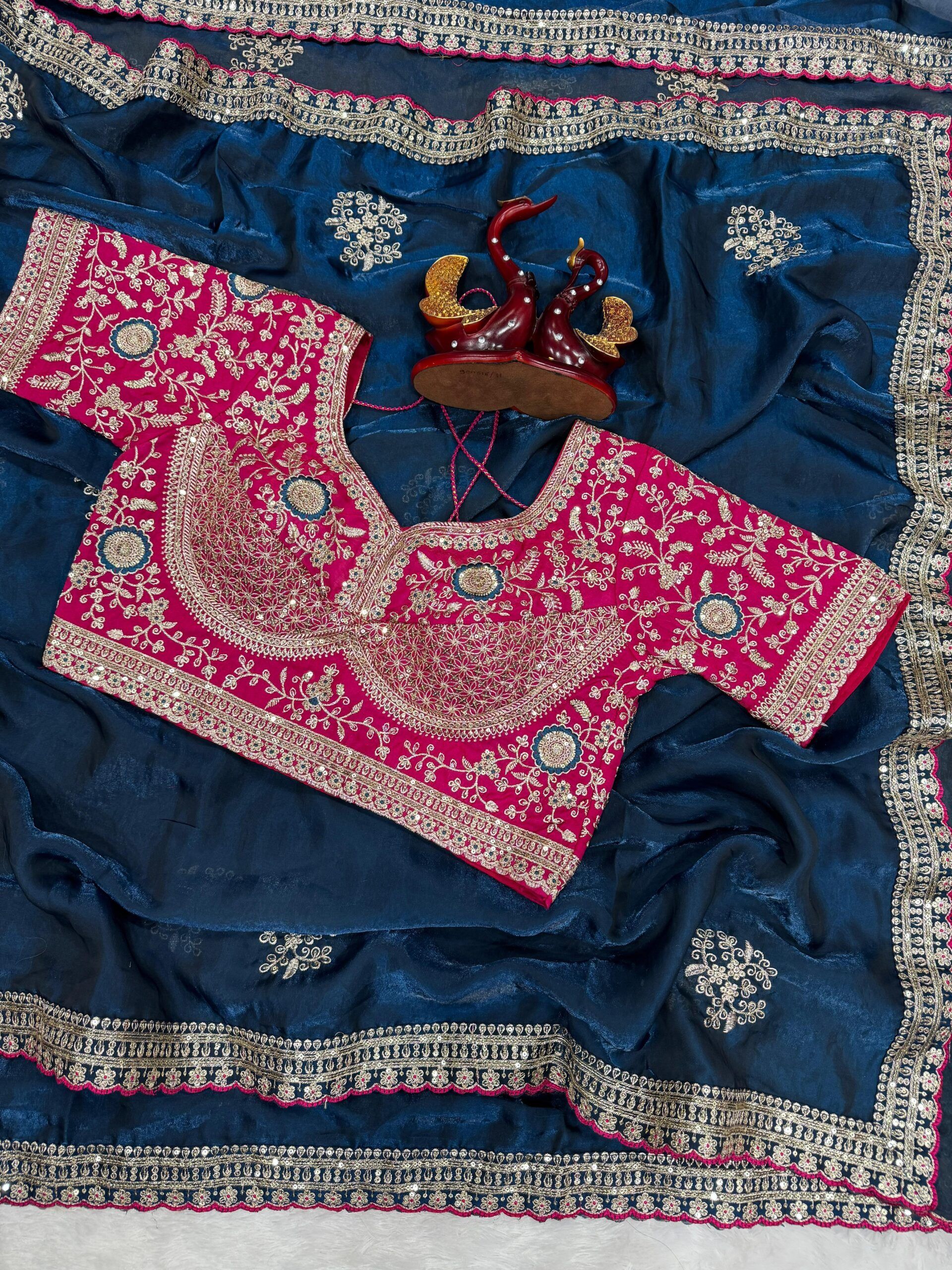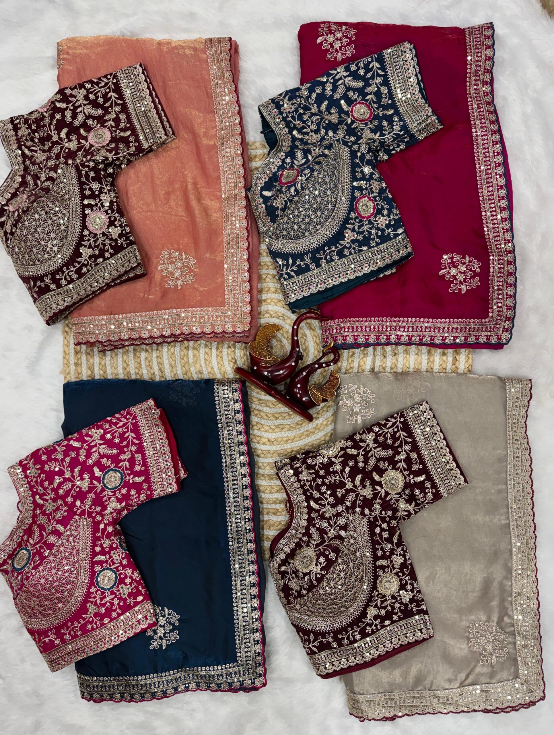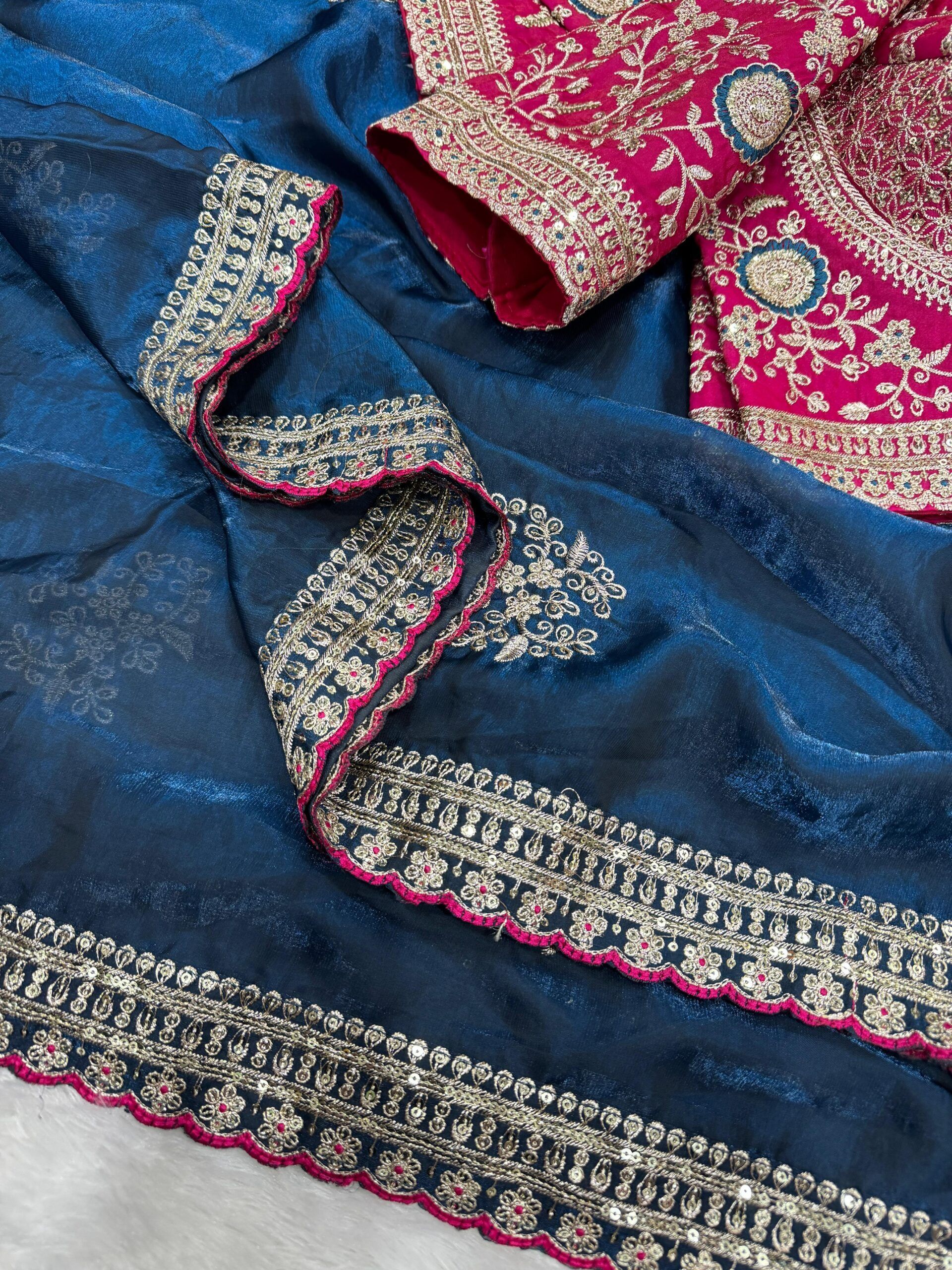 Fendy Satin Sequance and Zari Embroidery Work Saree (5 Pc Set)