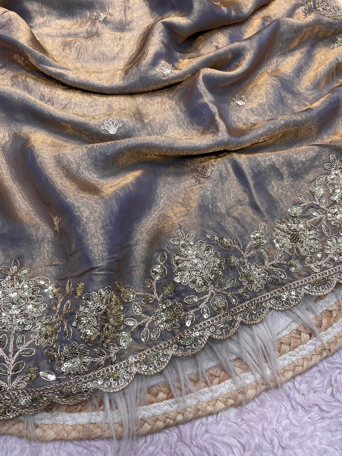 | Blouse: | Fendy Sattin With Coding sequence embroidery blouse ( Unsitch blouse) |