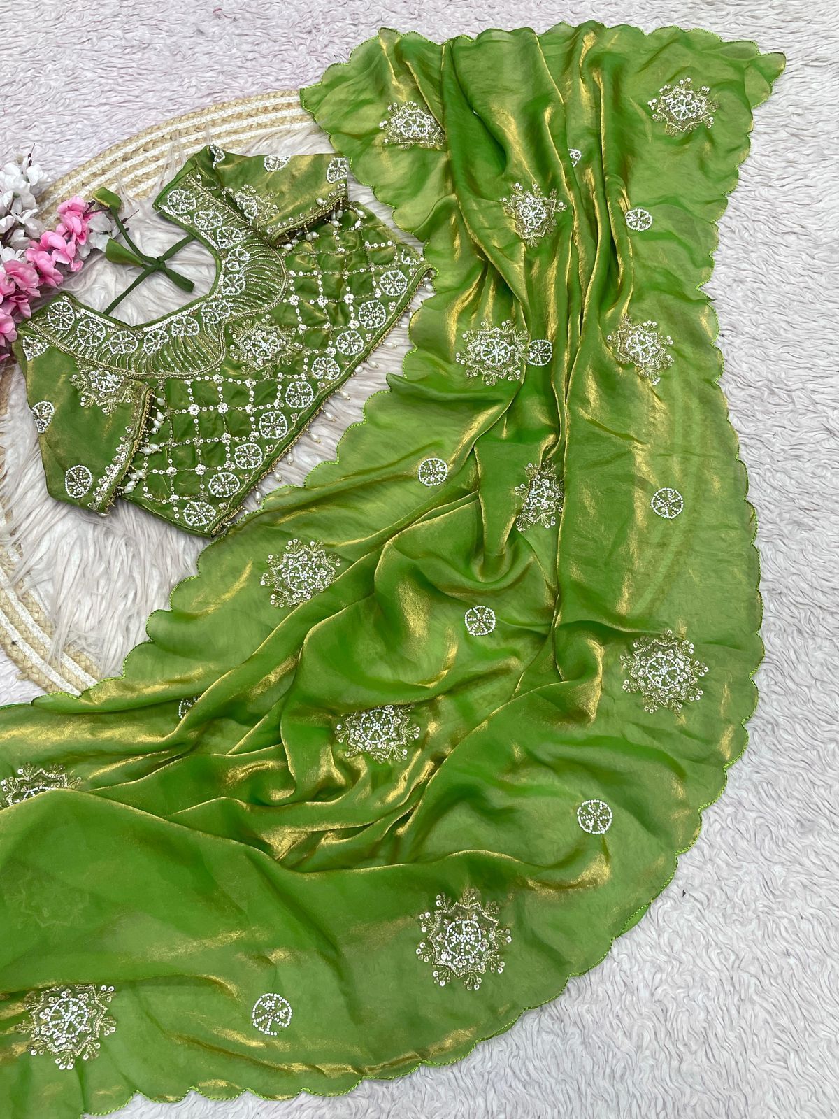 Organza is a fabric cultivated from organza silk. It’s one of the most stylish saris, perfect for summer.