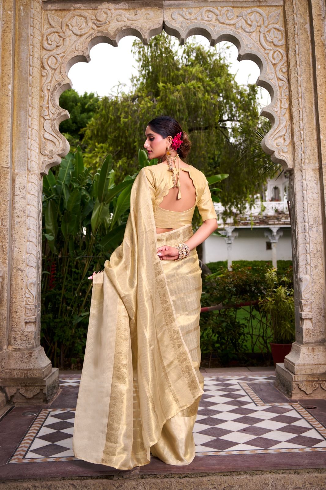 | Fabric: | Saree fabric : Gold Tissue Saree work : Zari Weaving Work Saree length : 5.5 meter |