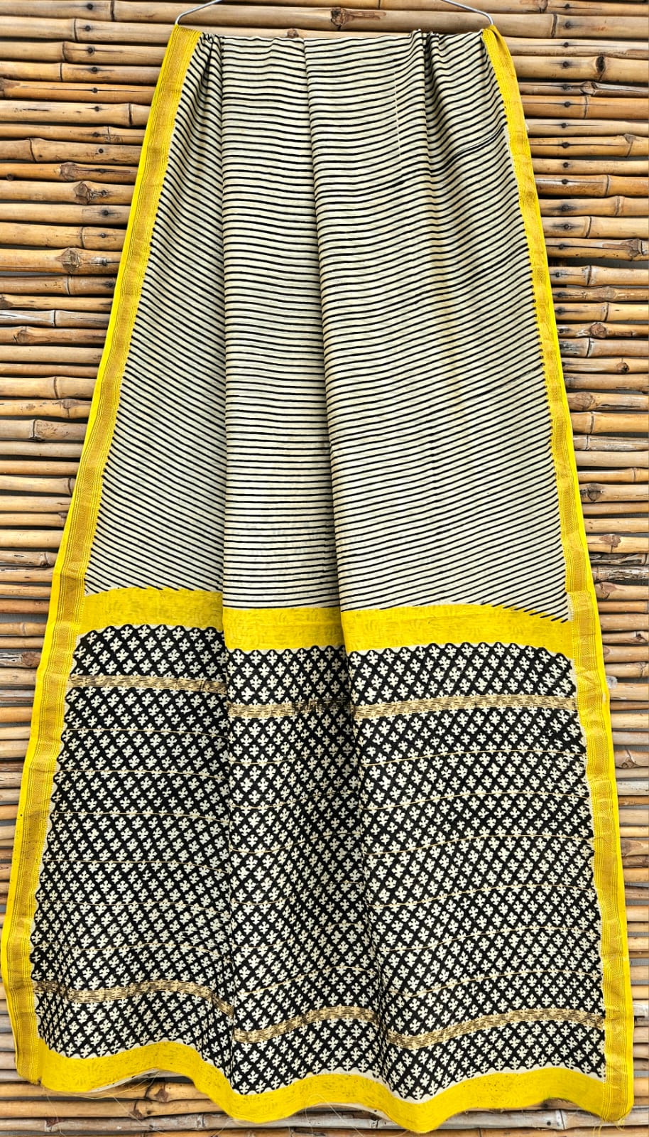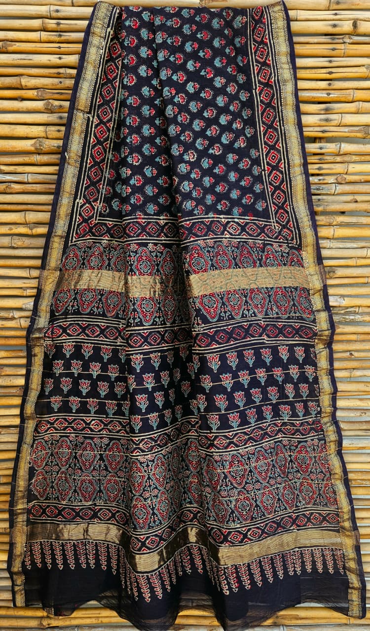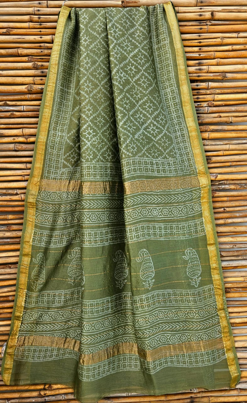 | Fabric: | Hand block printed Maheswari silk sarees with blouse |
