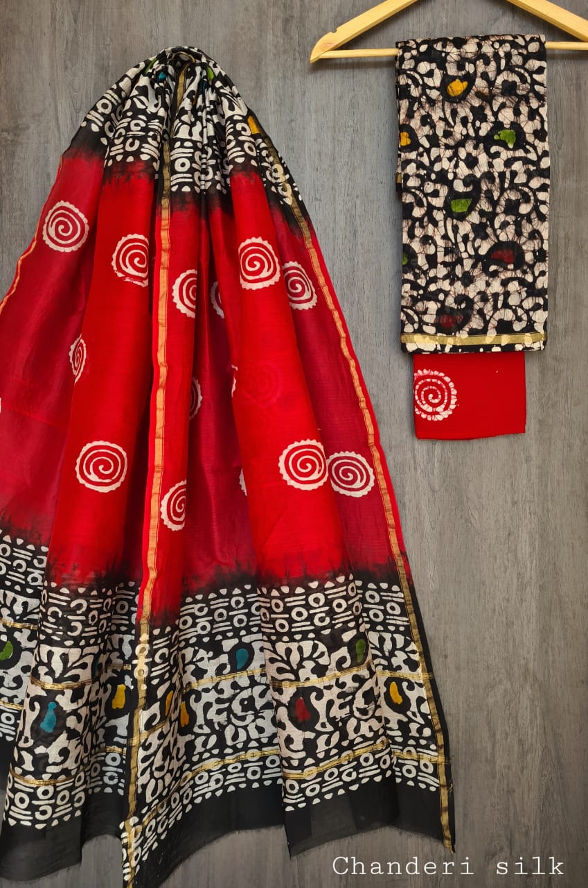 Handblock Pure Chanderi Silk Suit Wholesale Price 12 Pc Catalog