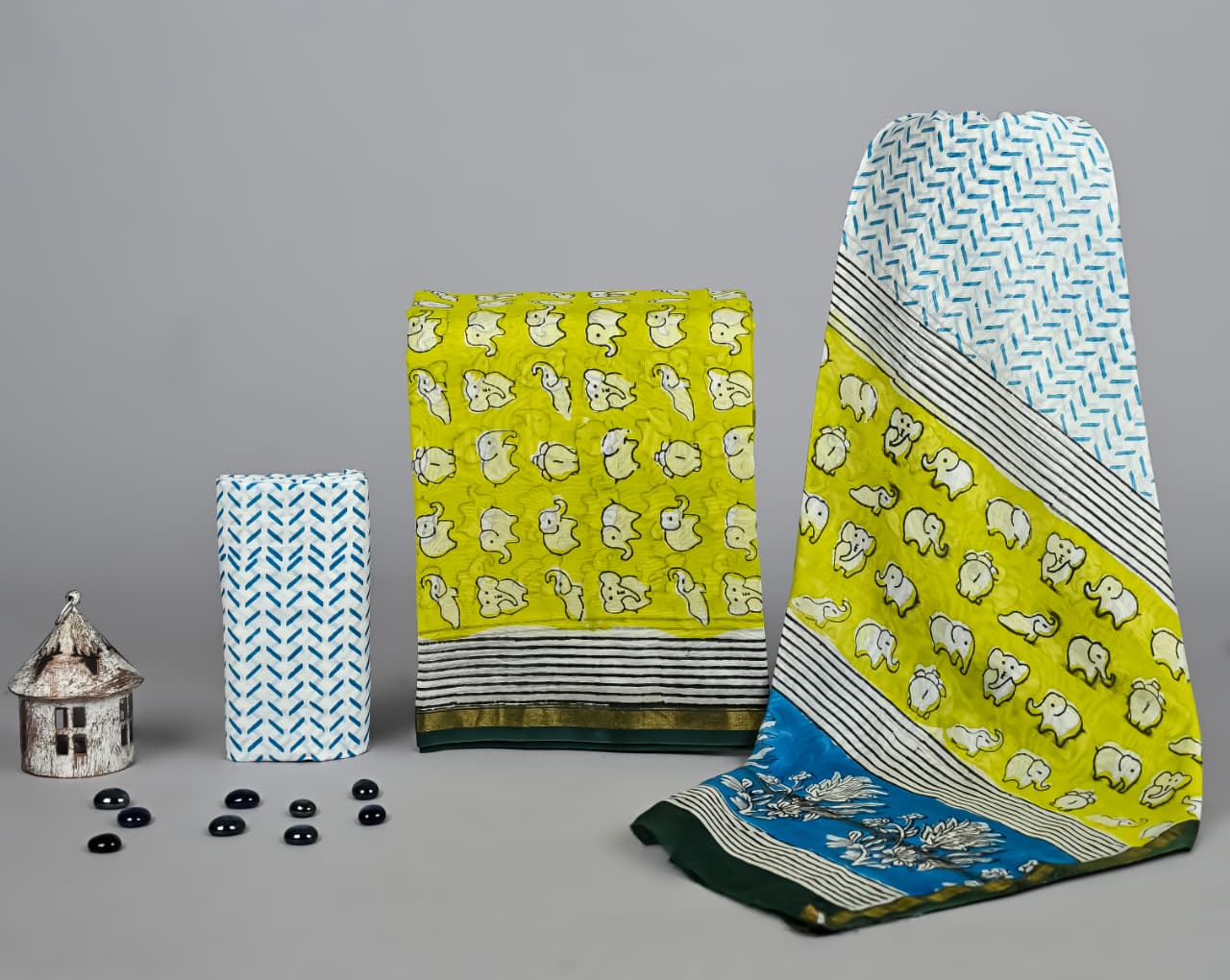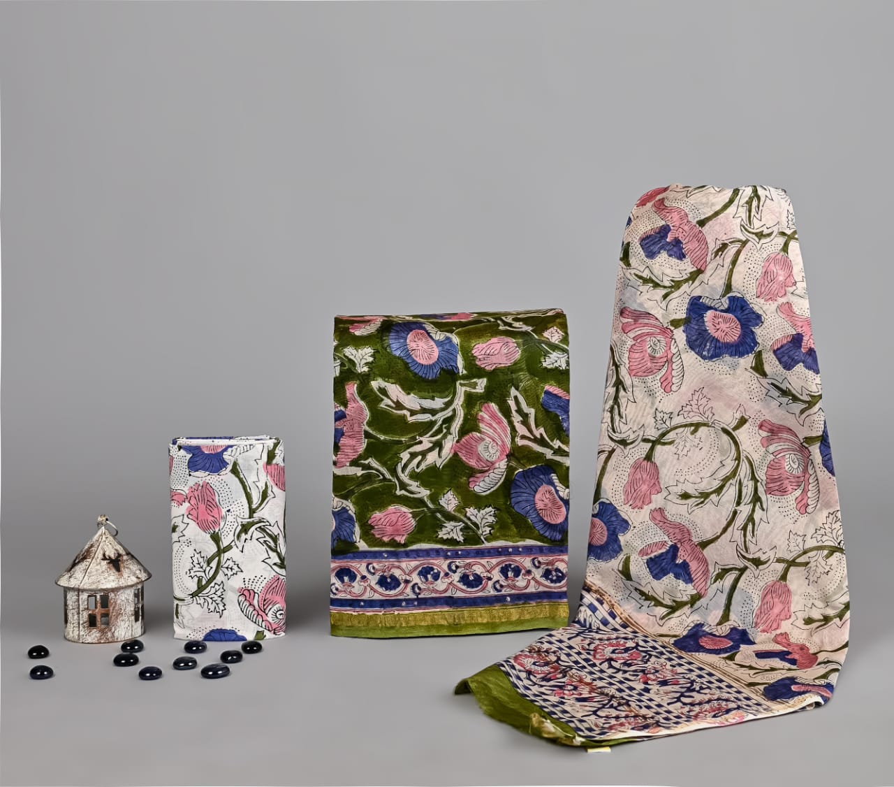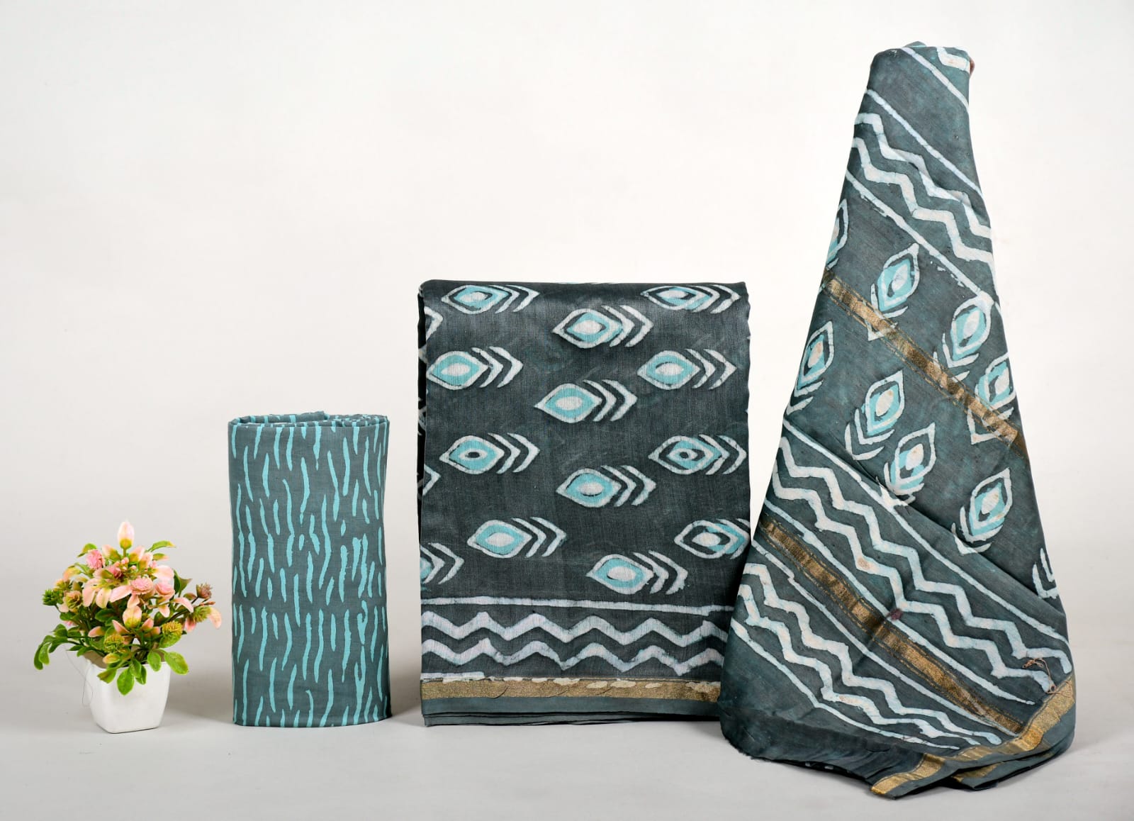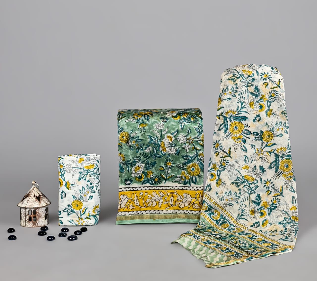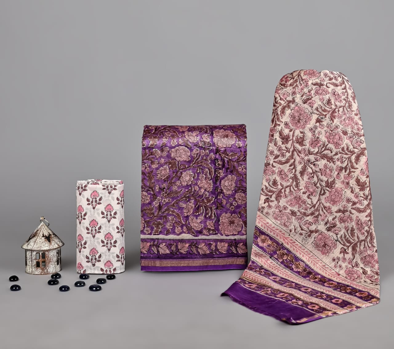 | Fabric : | Handblock Printed Pure Chanderi Silk Suit Wholesale Price |