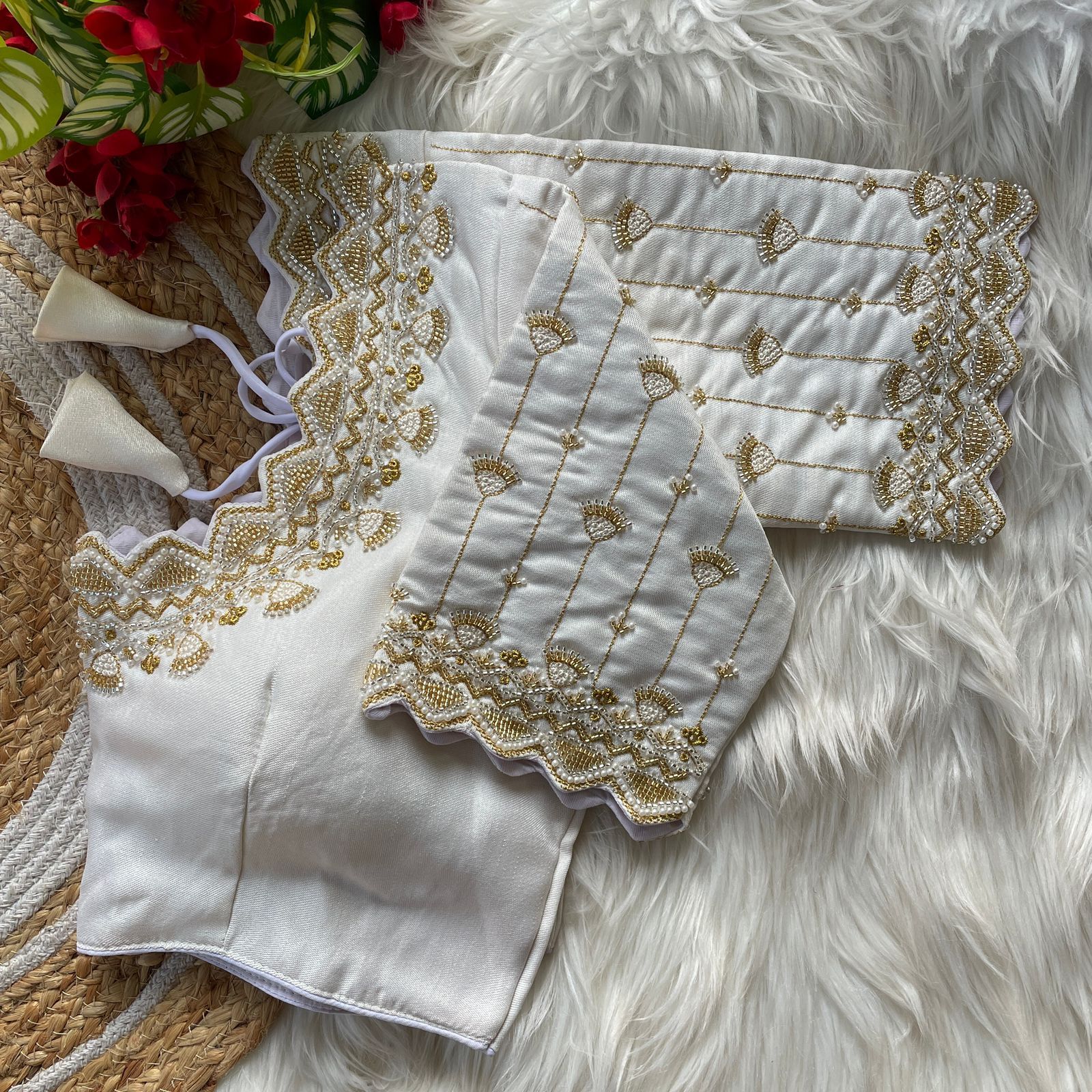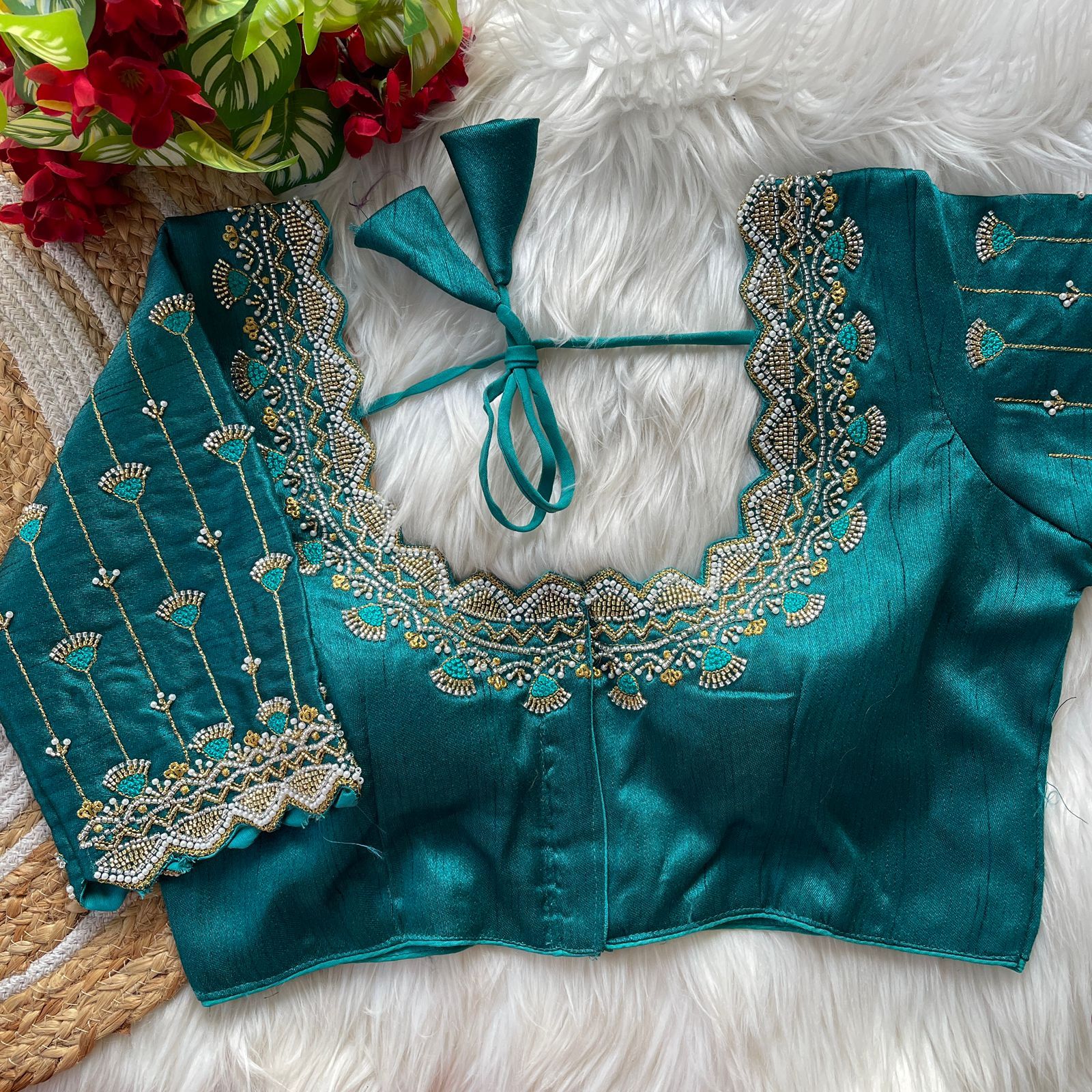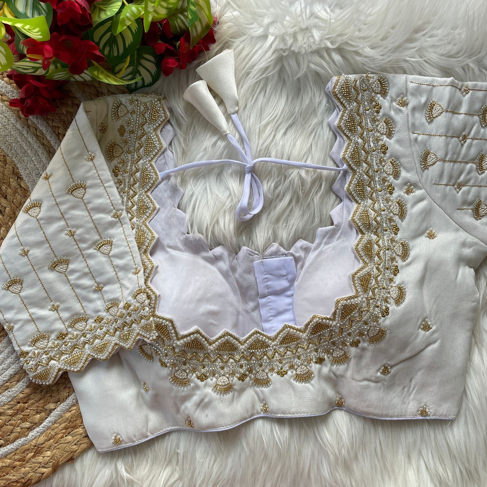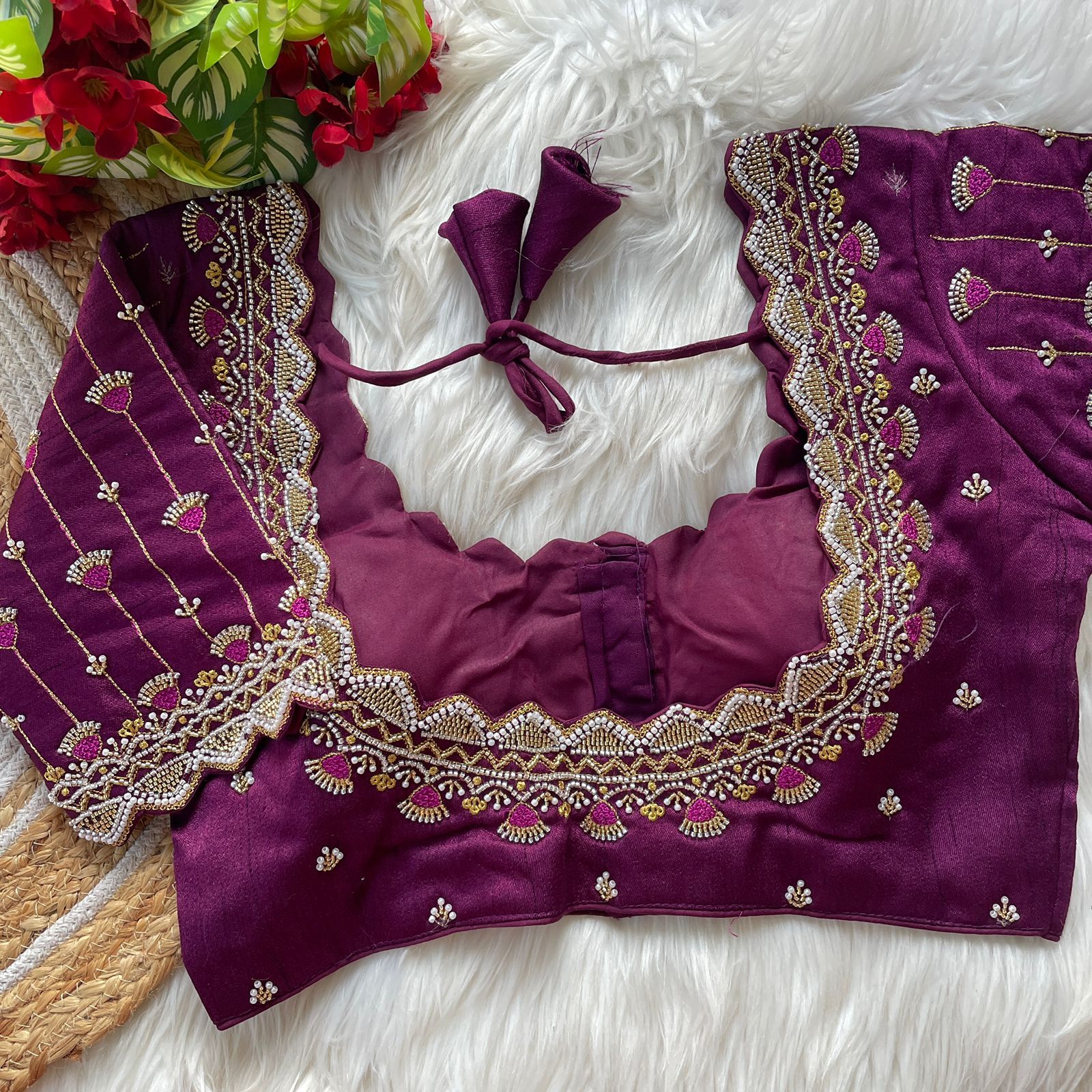 | Other Details | 12” Sleeves Beautiful Work Partywear desgine Heavy Stitching Heavy Padded Handmade Hooks With Beautiful Latkans Front open StylePRINC CUT HEAVY BEADS WORK BRIDAL BLOUSE |