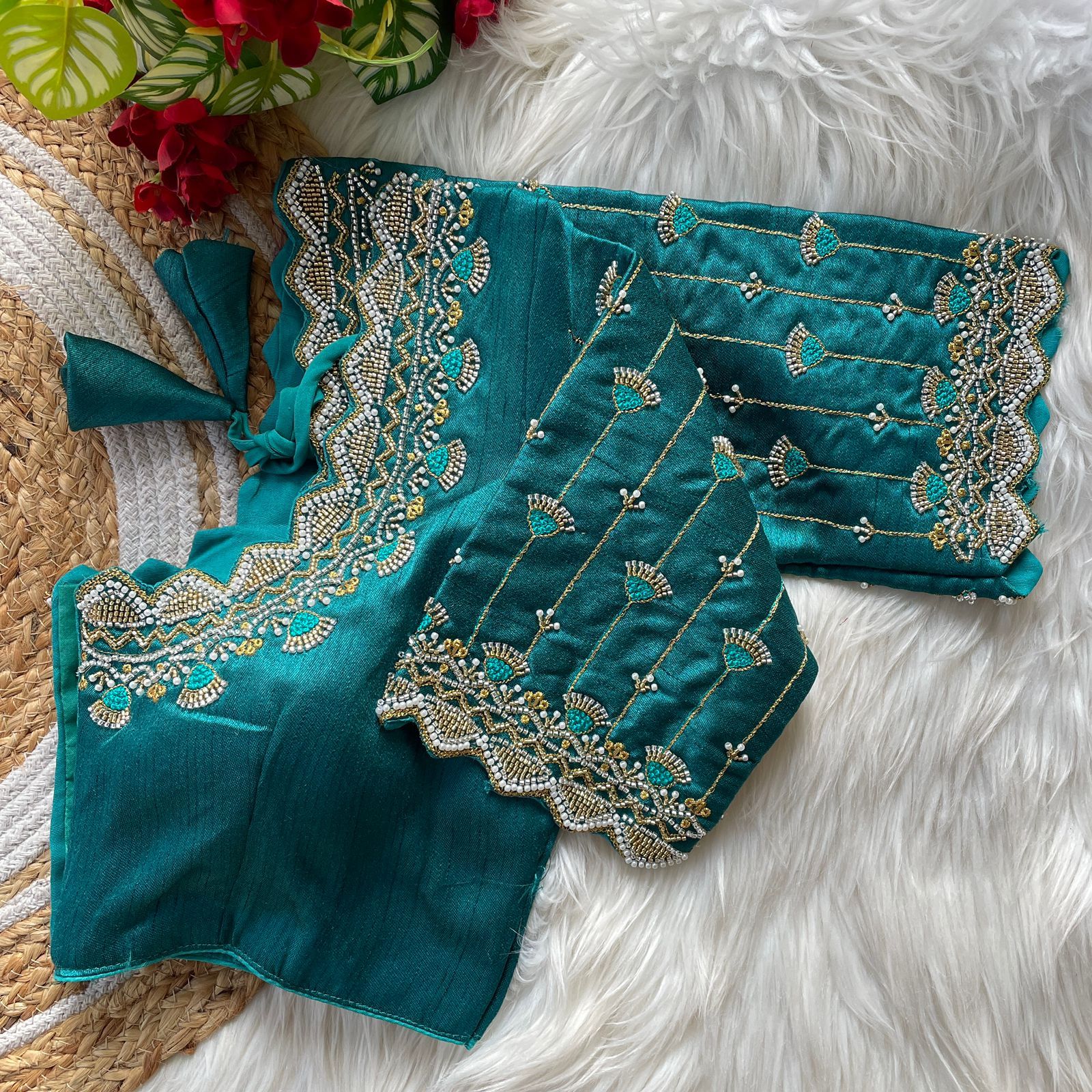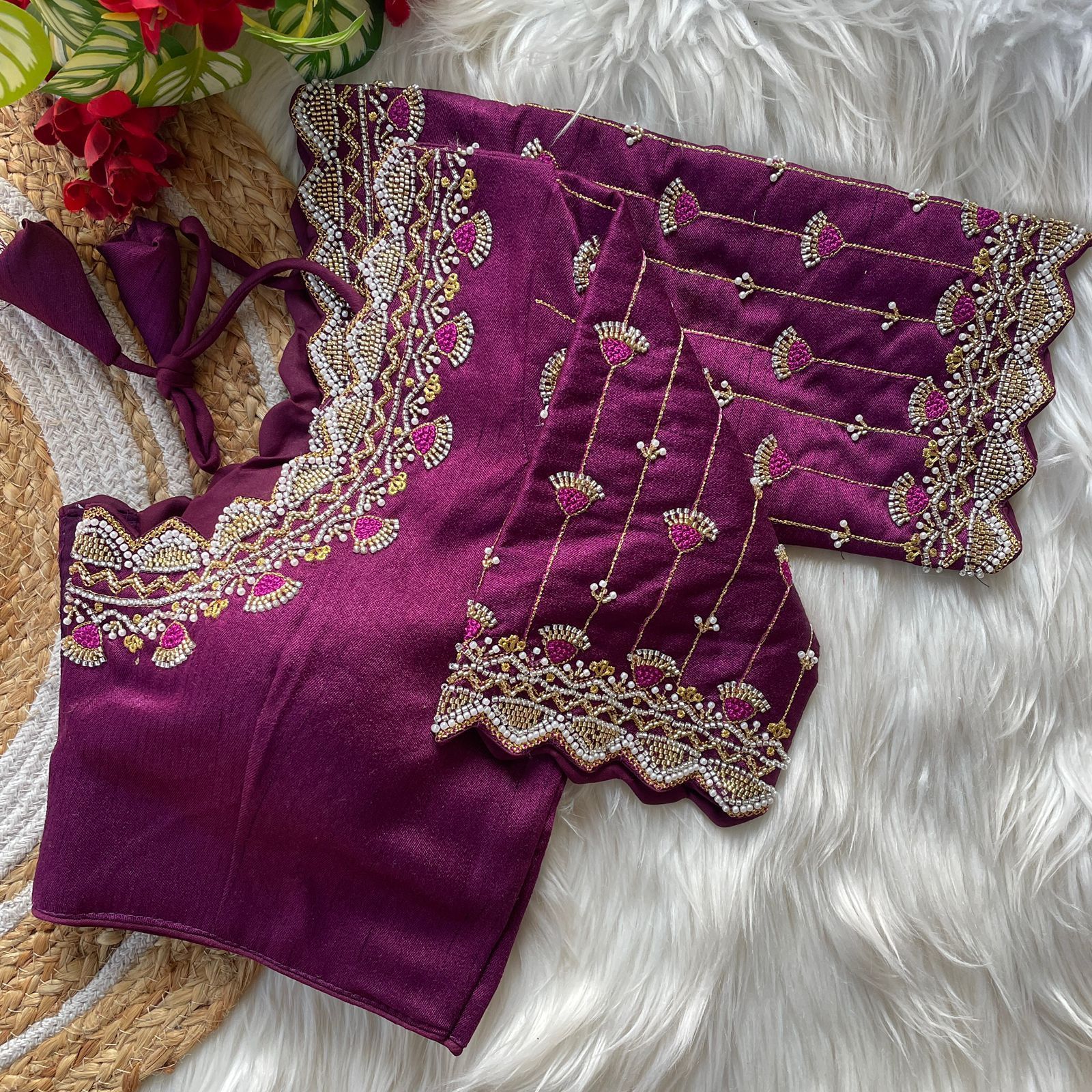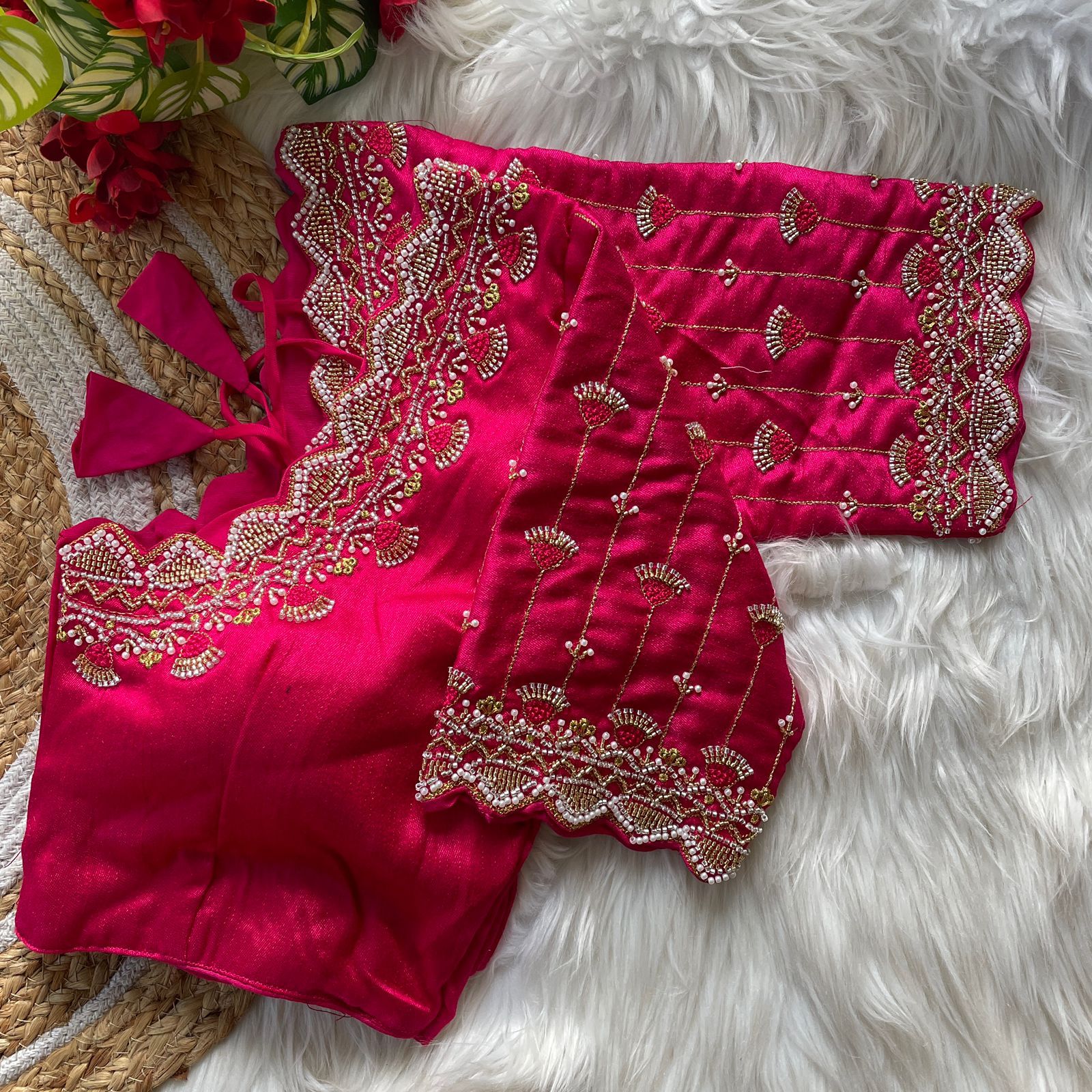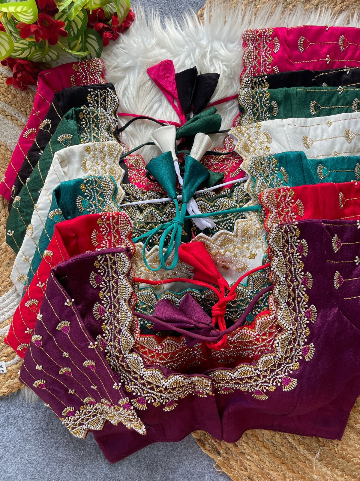 Heavy Pure Soft Roman Silk Beads Work Bridal Blouse Wholesale Price 7 Pc catalog