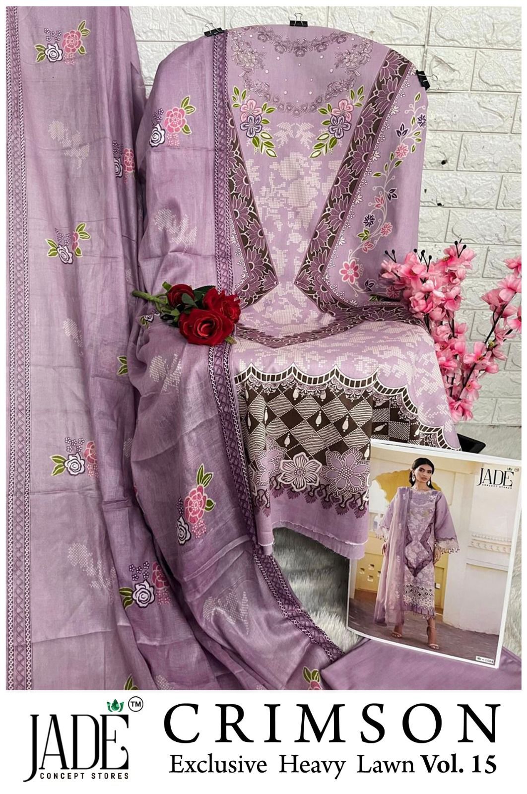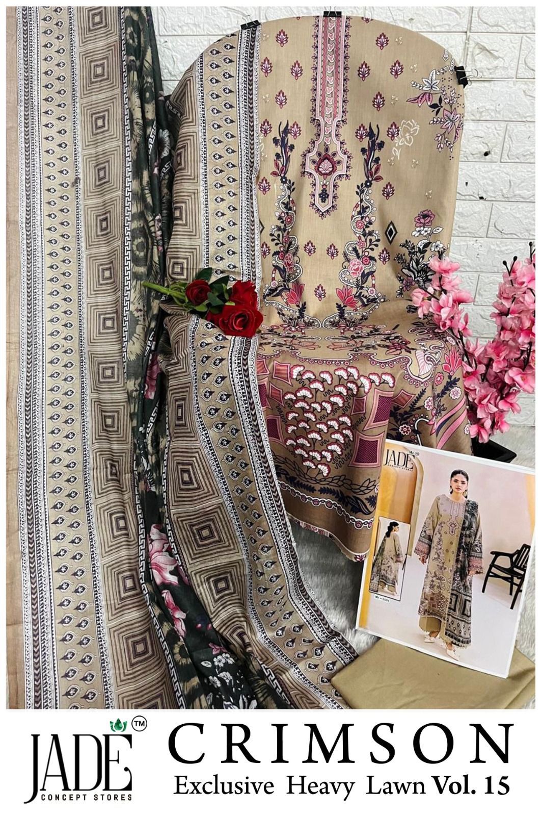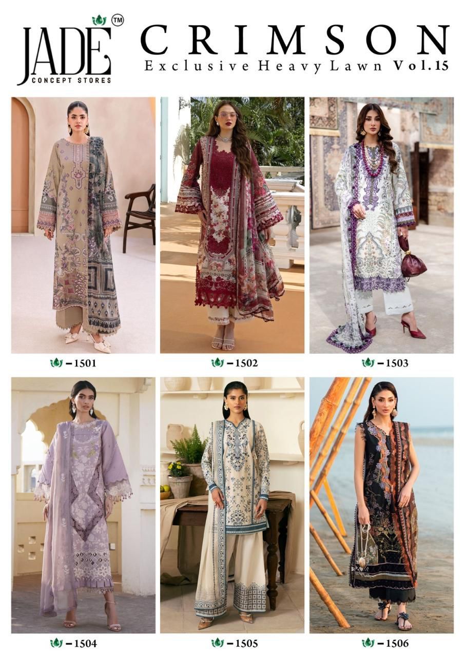 Jade Chevron Vol 15 Excusive Heavy Lawn Printed Suit (6 Pc Set)
