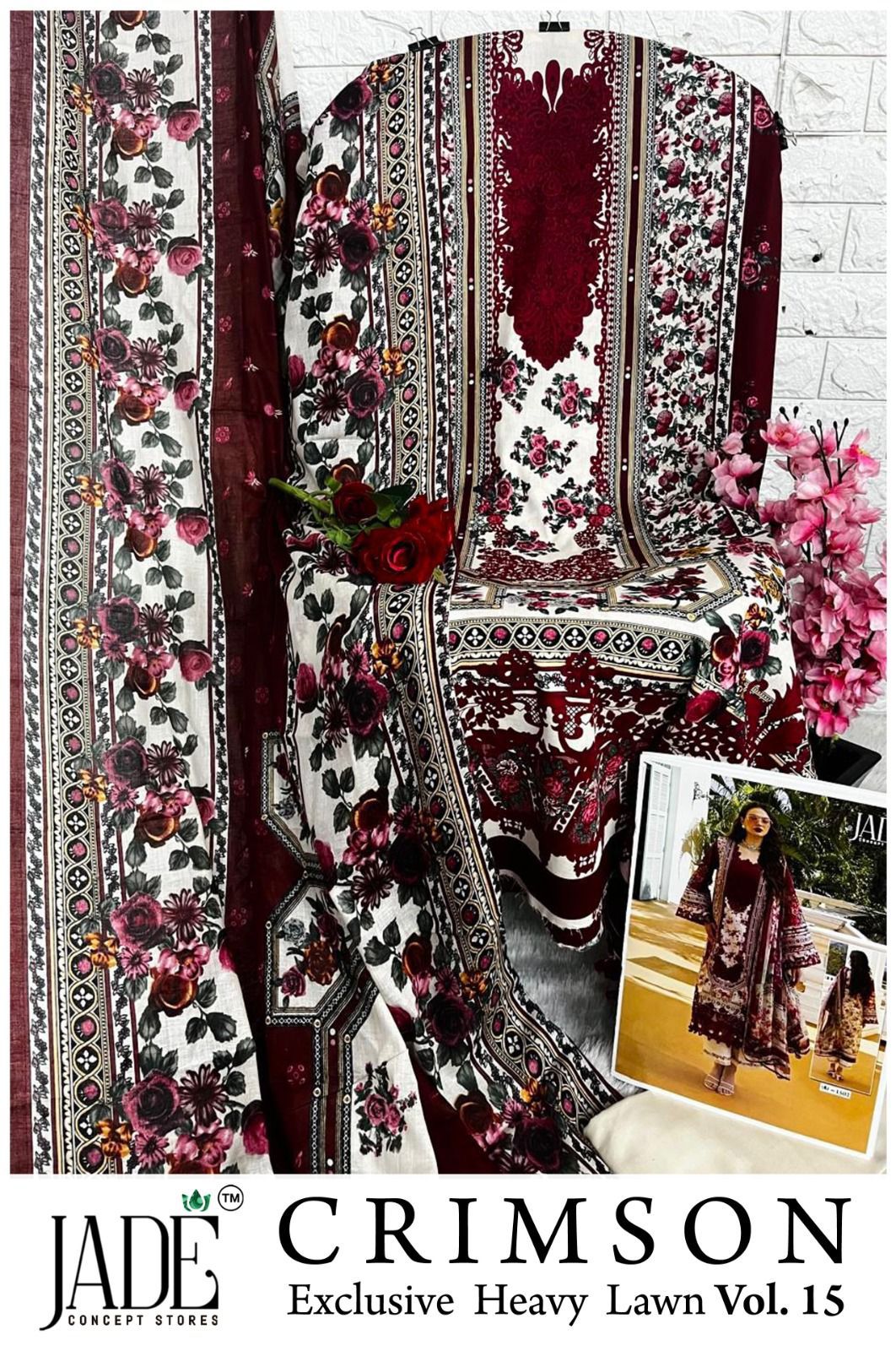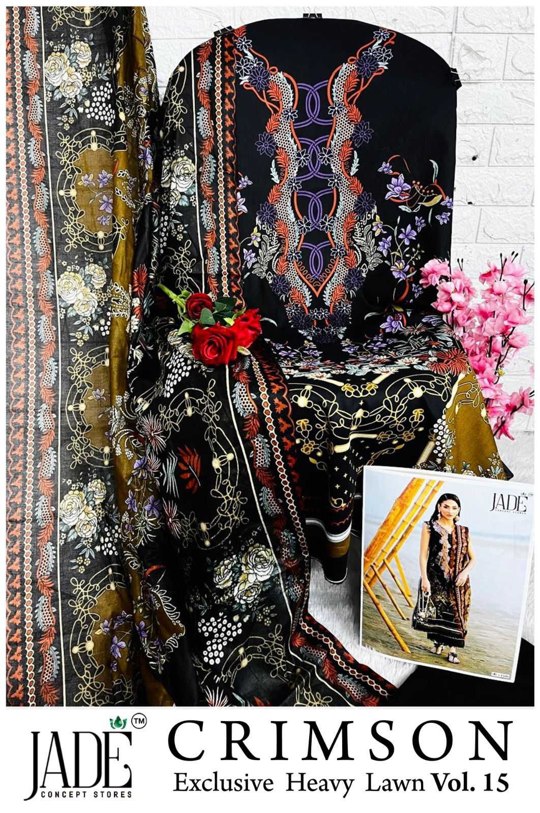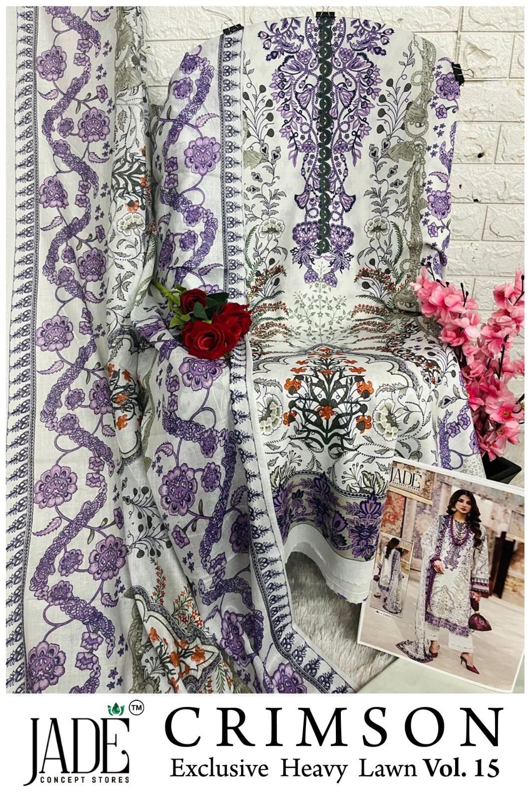 Jade Chevron Vol 15 Excusive Heavy Lawn Printed Suit (6 Pc Set)