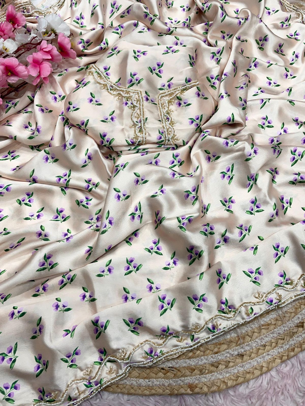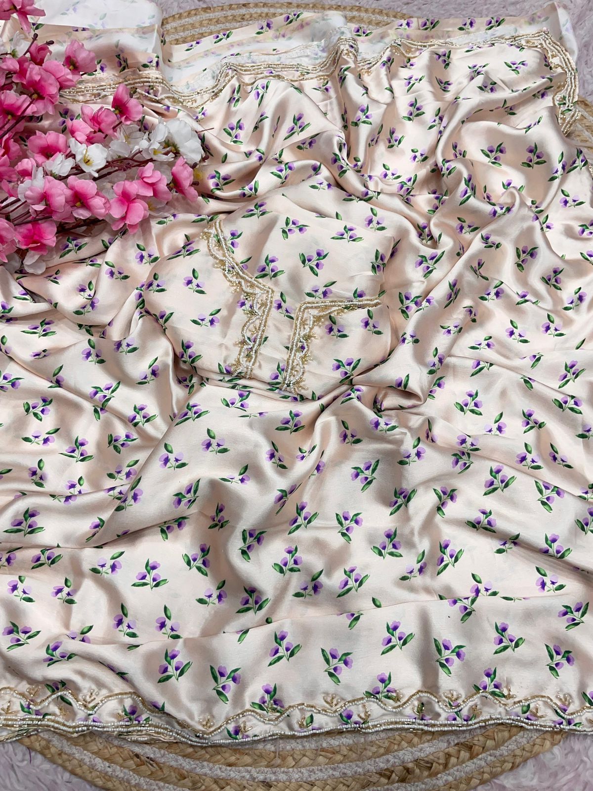 Be the first to review “Japan Satjn With Digital Print Handwork Saree”