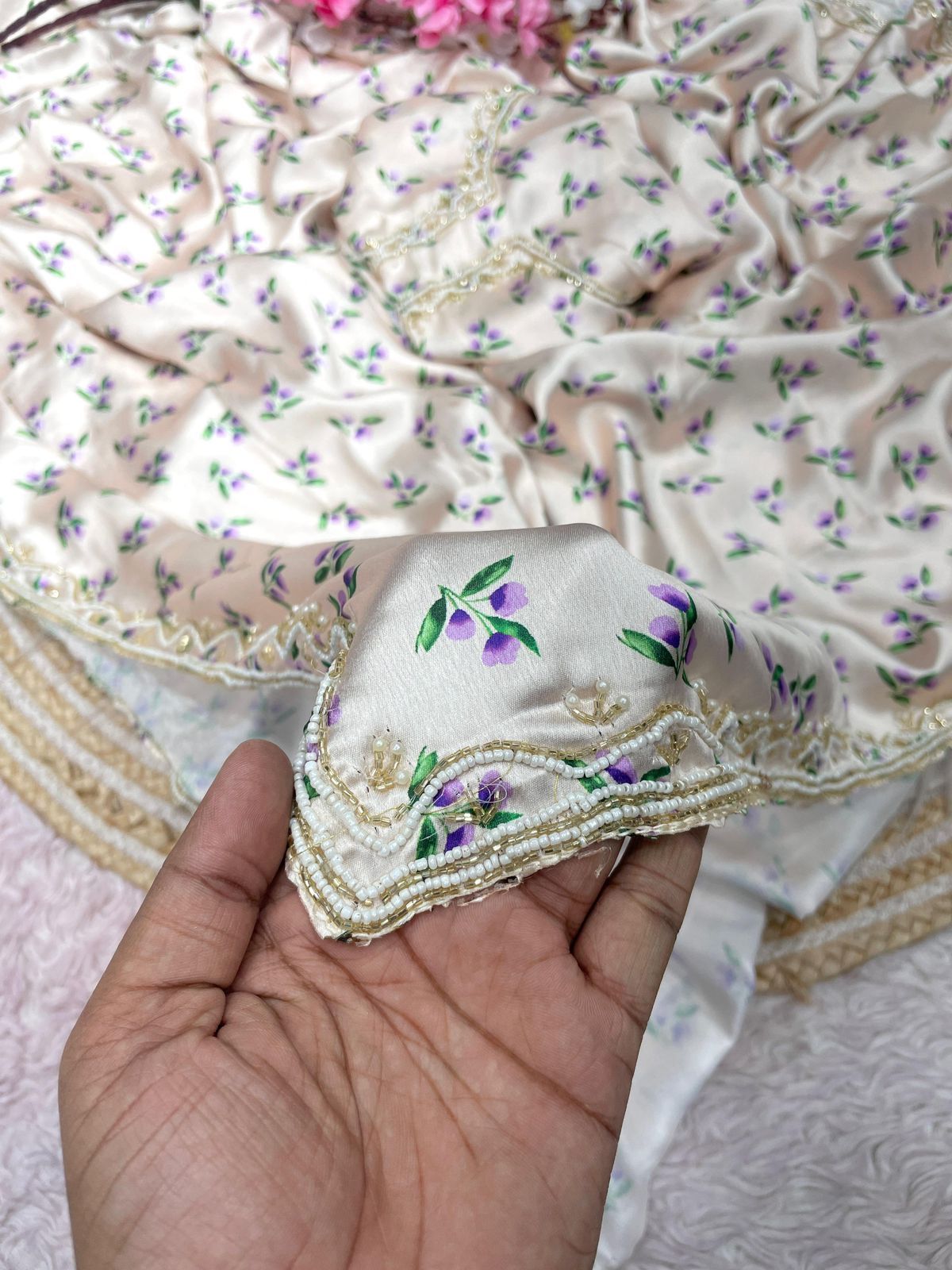 Japan Satjn With Digital Print Handwork Saree