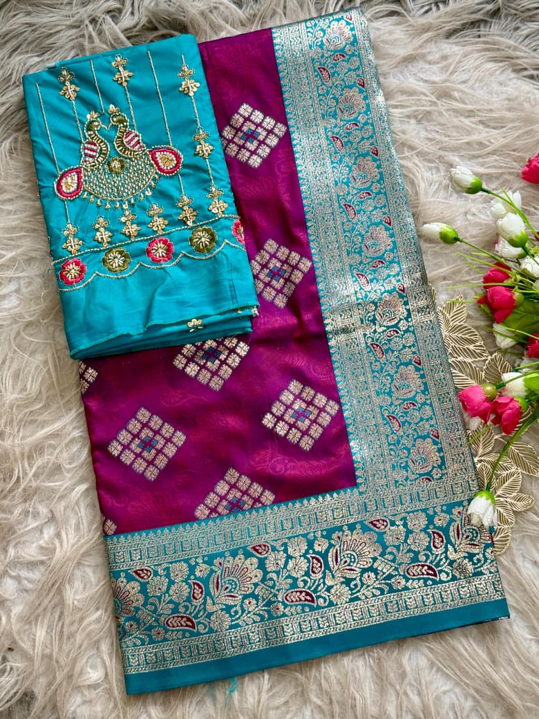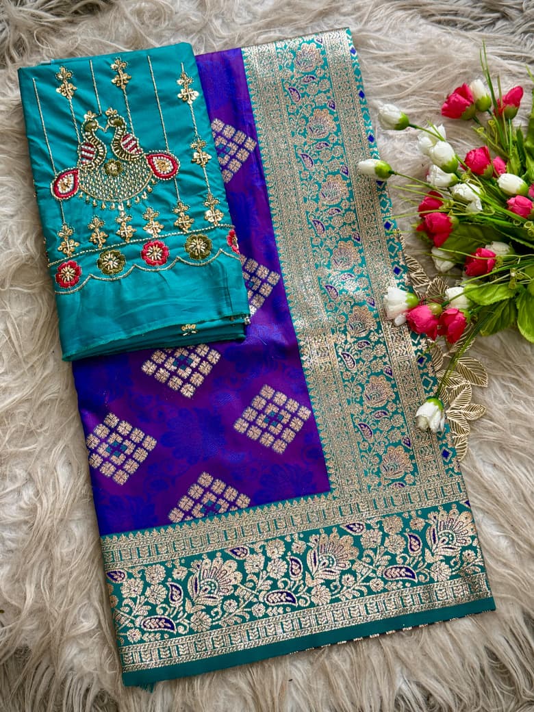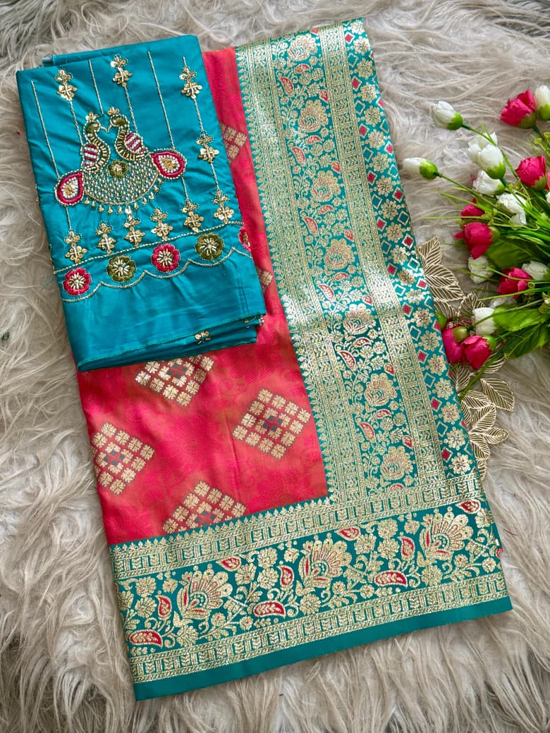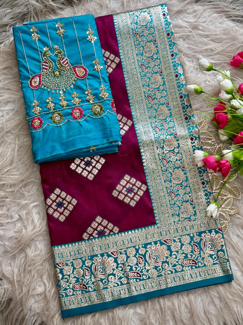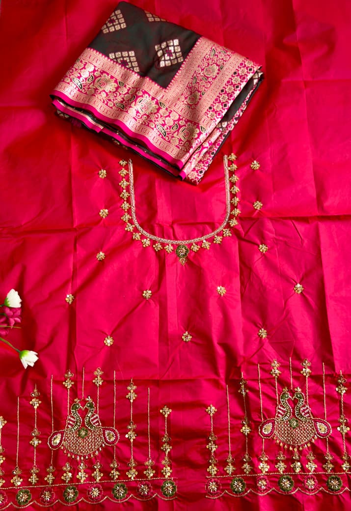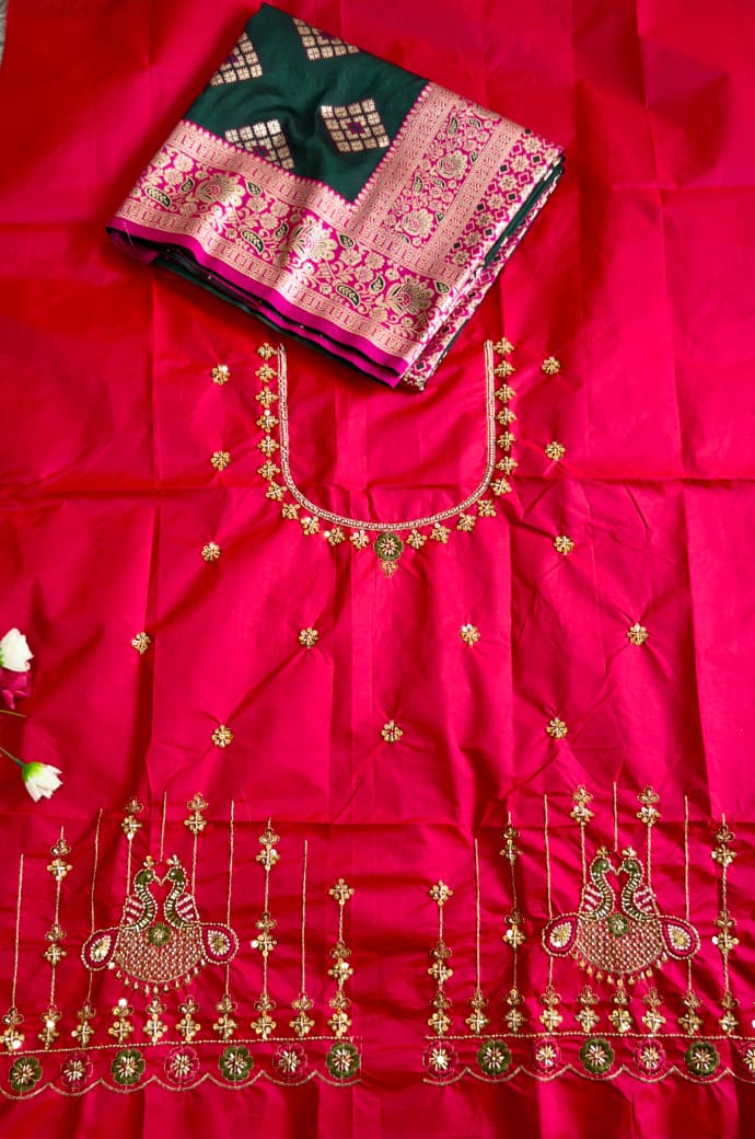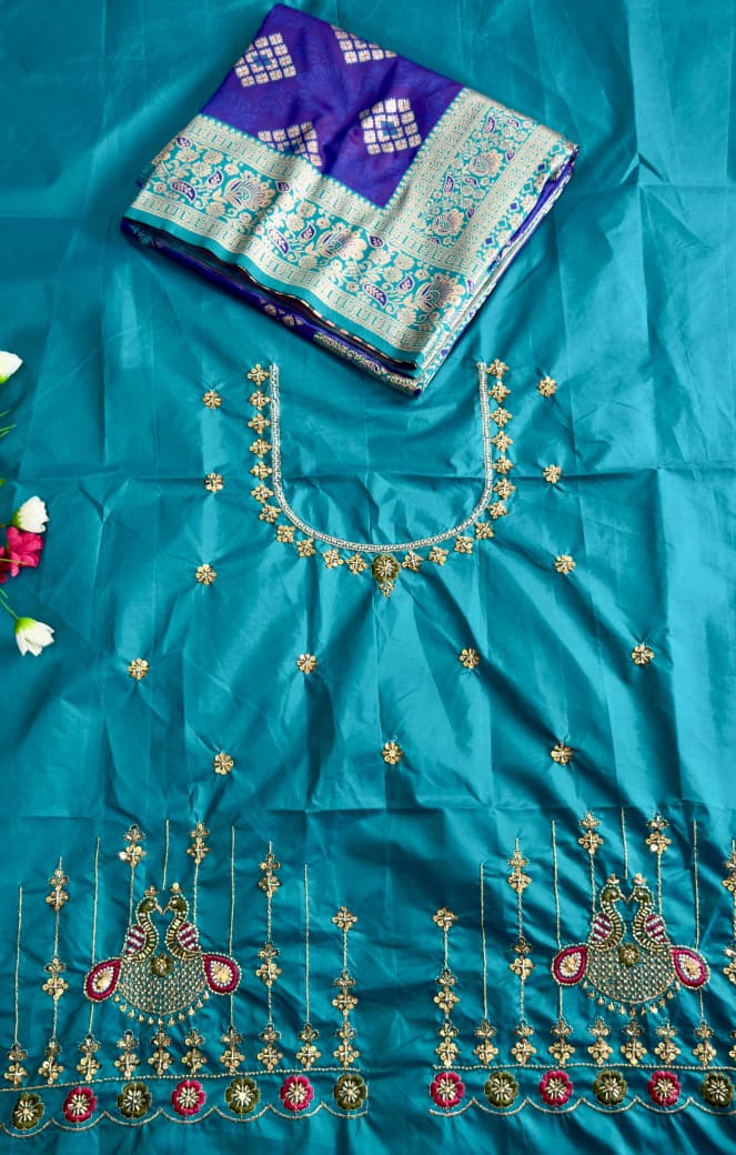 | Blouse: | a contrast blouse plus an extra aari & handwork blouse (normal blouse plus aari blouse ) |