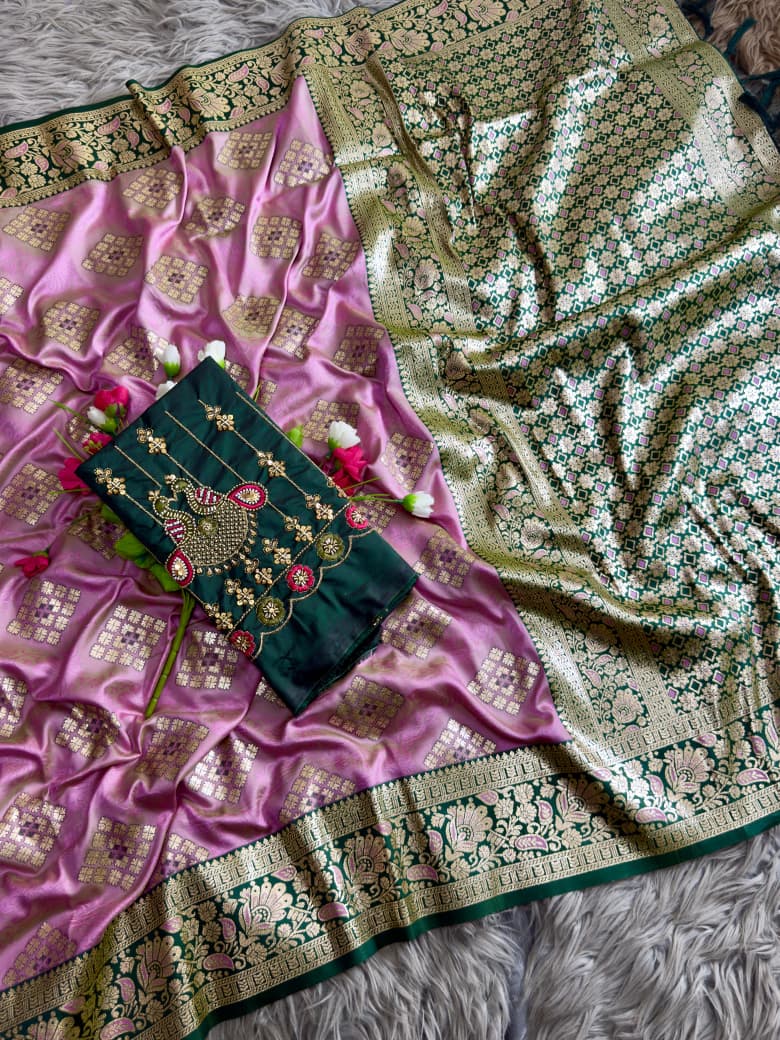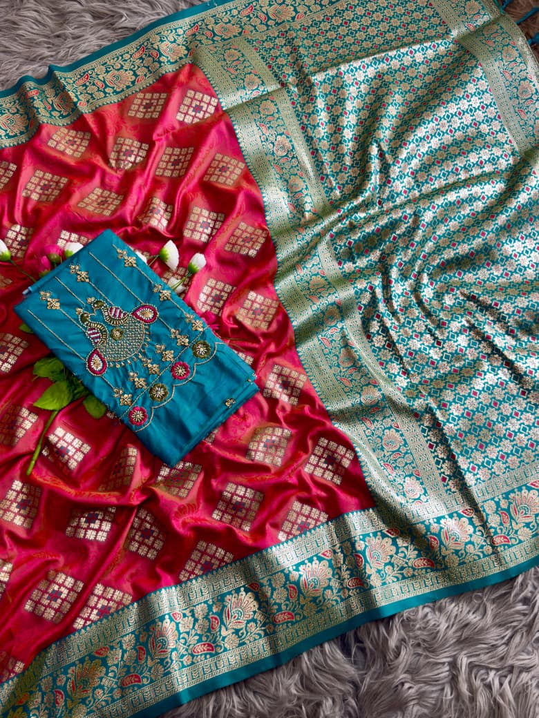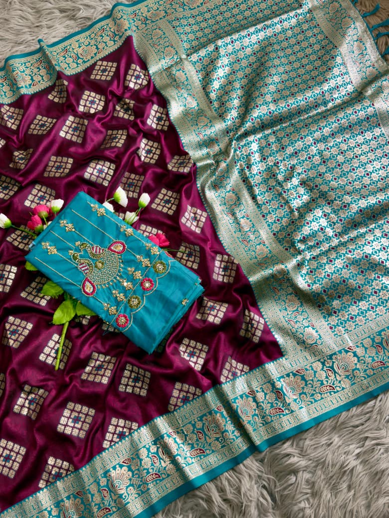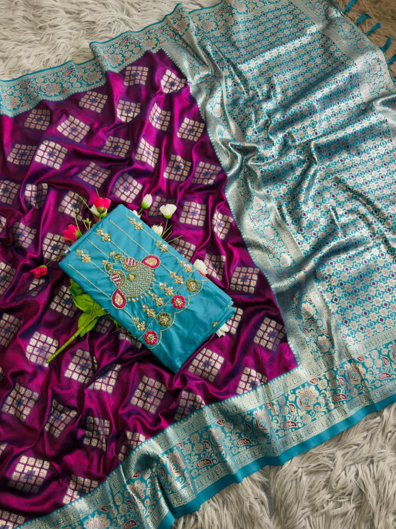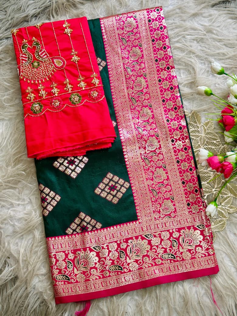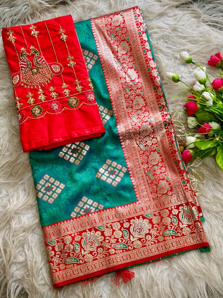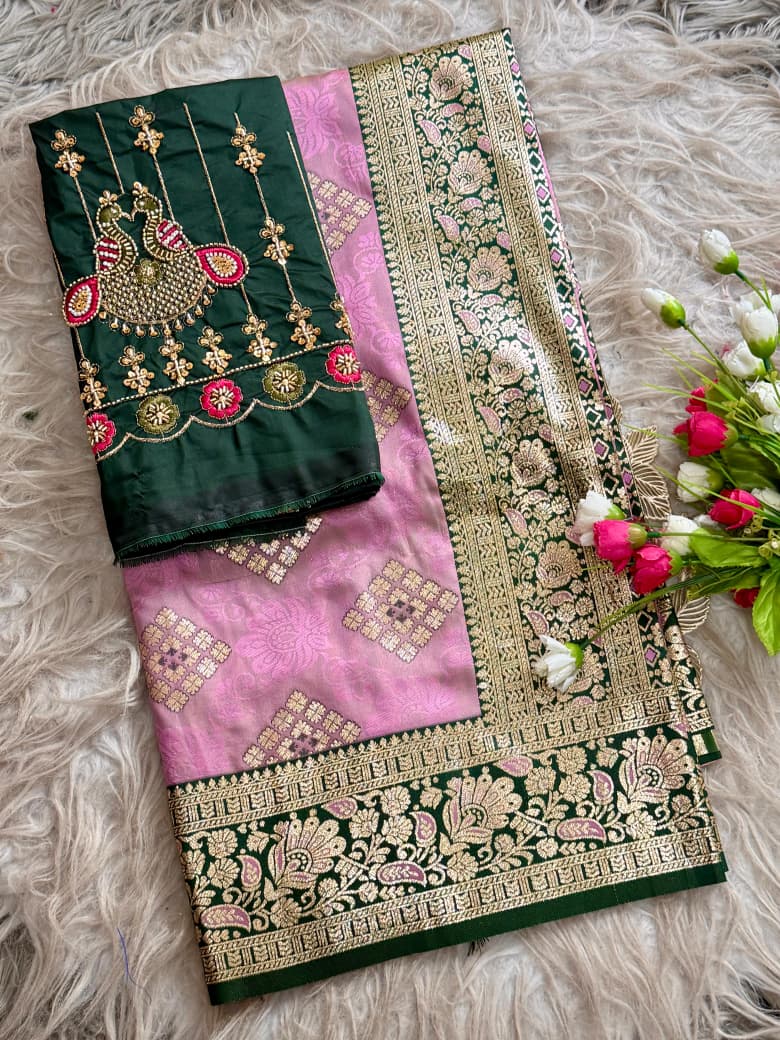 | Blouse: | a contrast blouse plus an extra aari & handwork blouse (normal blouse plus aari blouse ) |