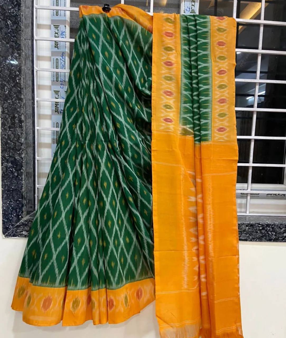 Name: Plain Linen Ikkat Printed Saree