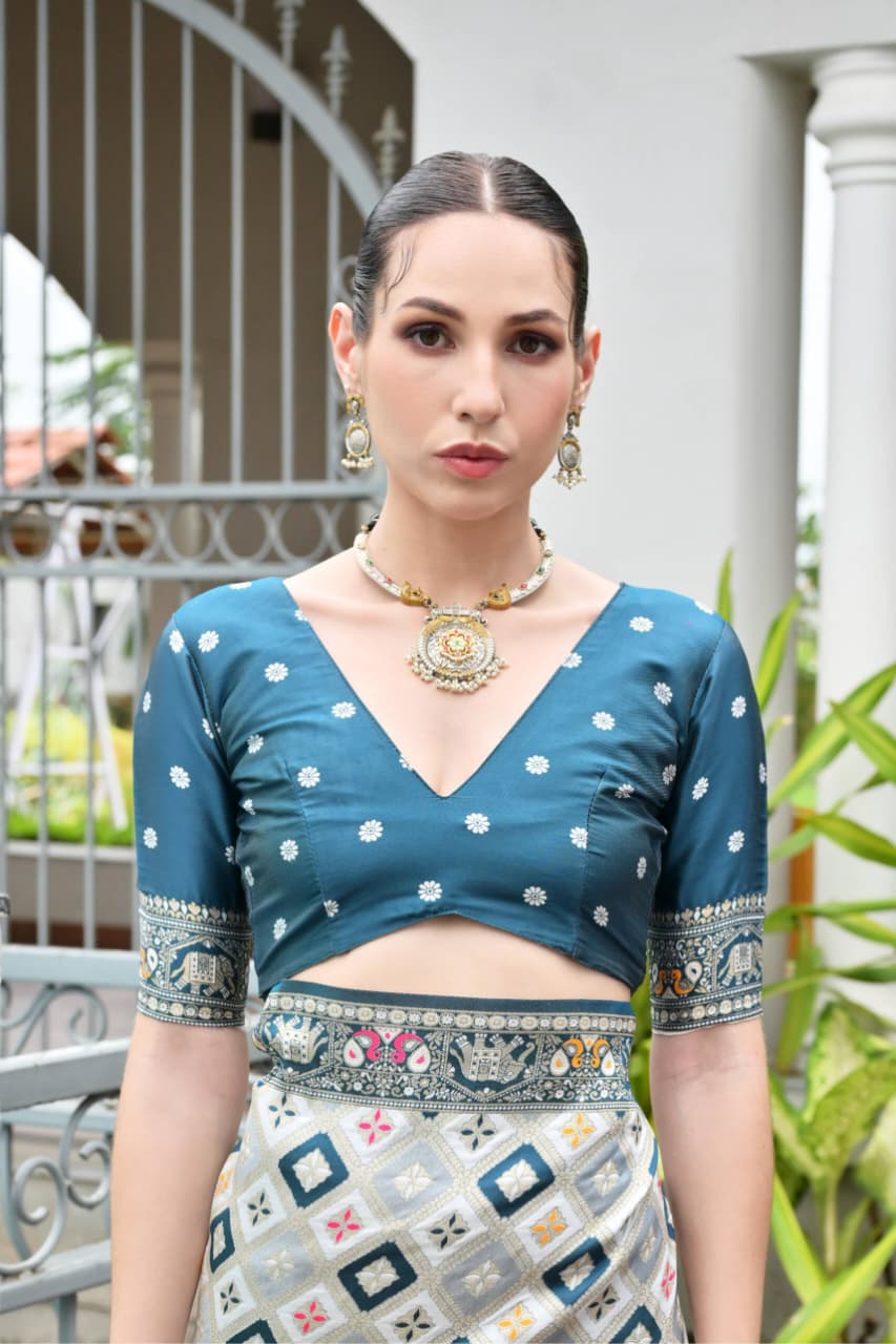 Fabric: Premium Soft Banarasi Silk Patola And Ajarakh Saree With Meena And Zari Weaving Rich Pallu