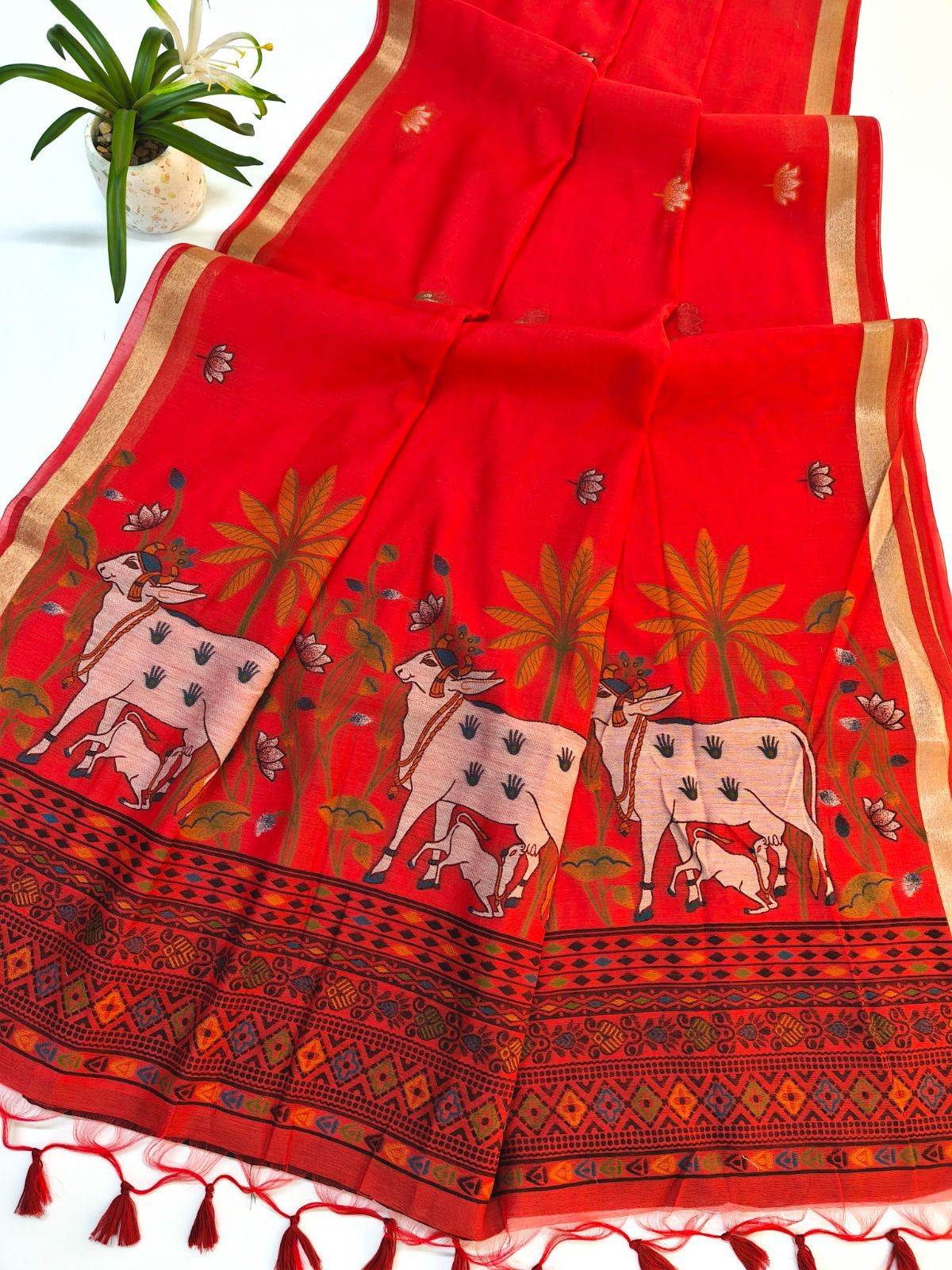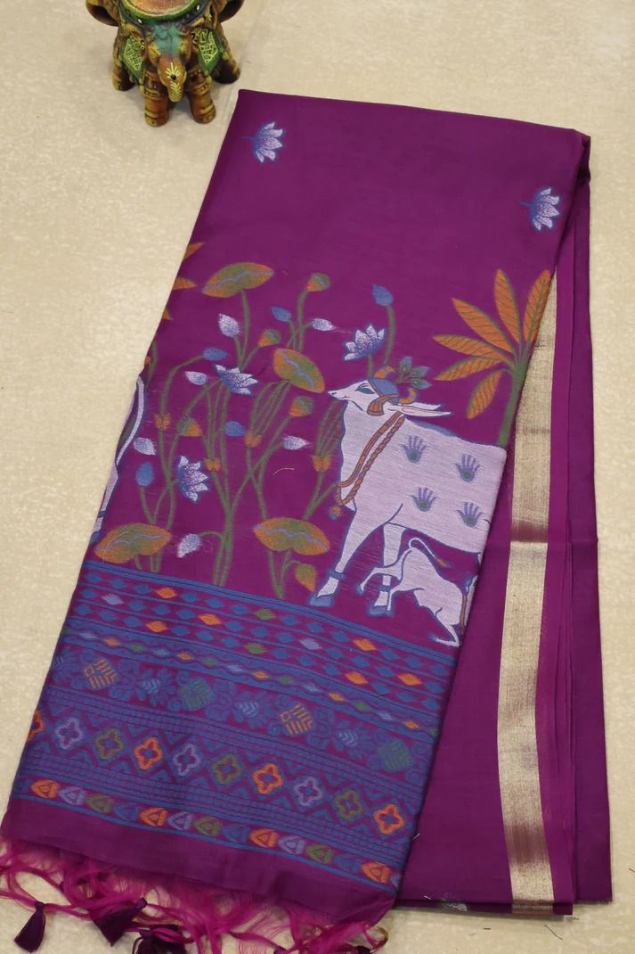 Fabric: Premium Soft muga cotton saree with traditional pichwai weaving pallu & zari weaving border