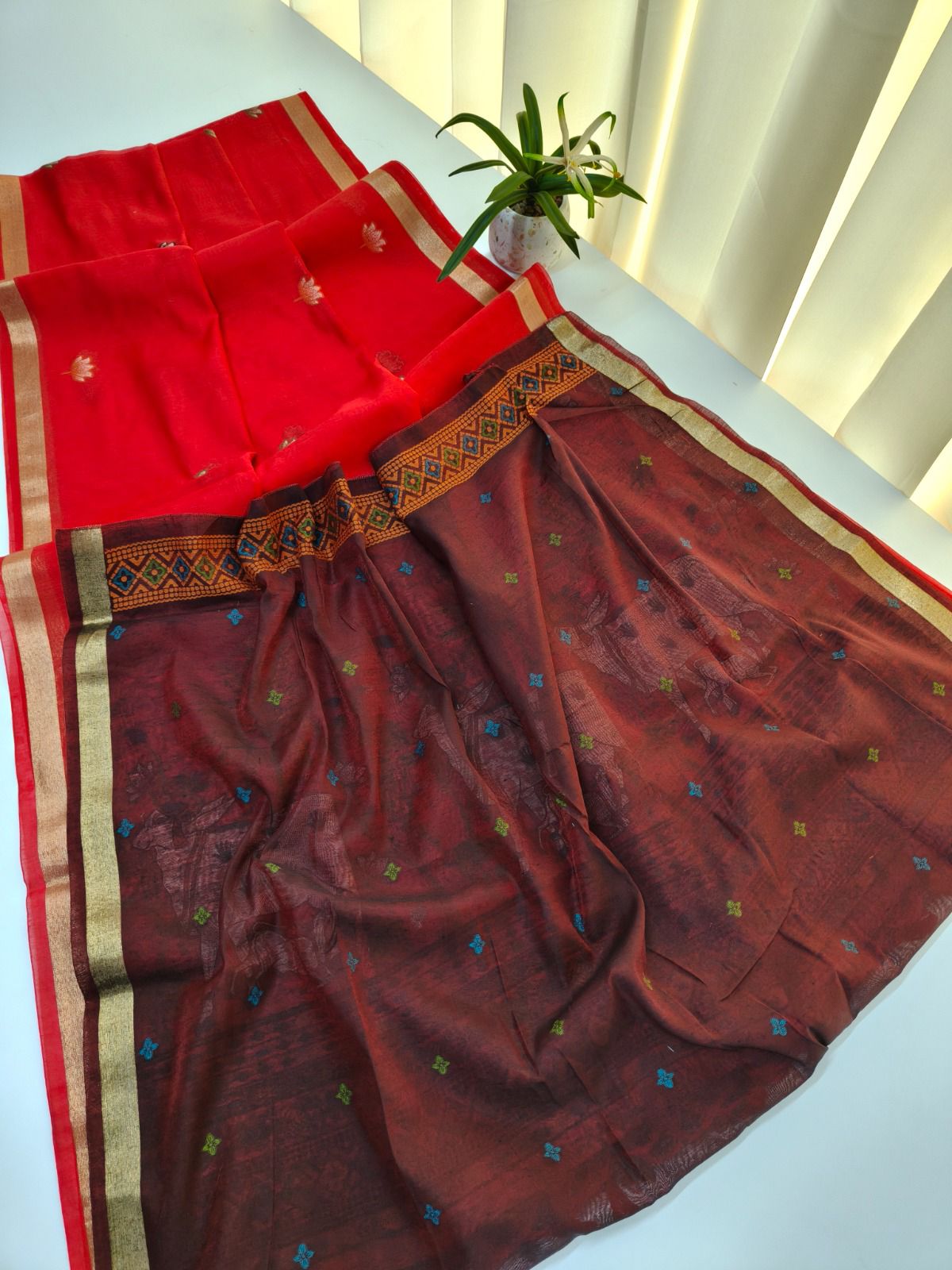 Premium Soft Pure Muga Cotton Saree (6 Pc Set)