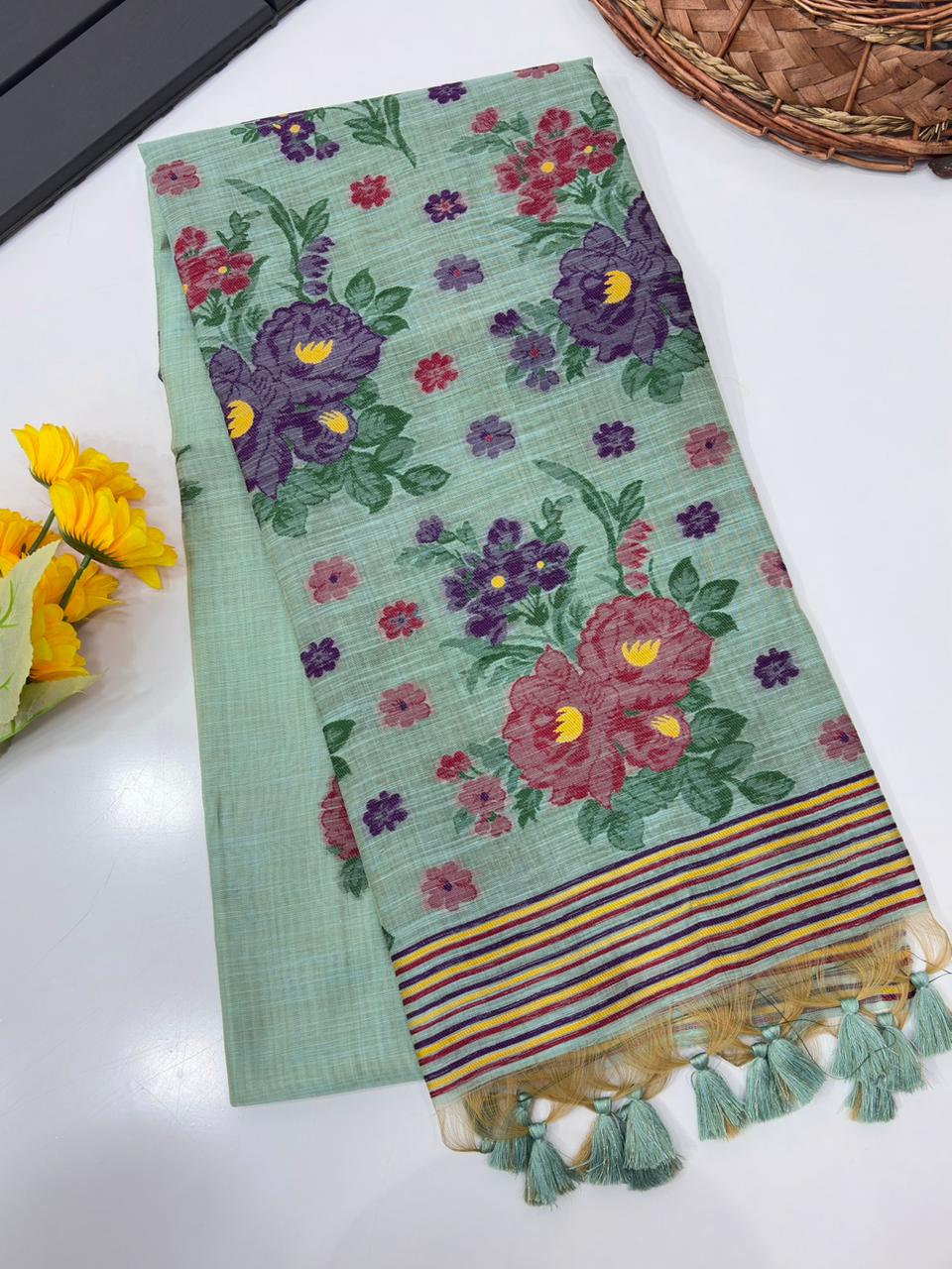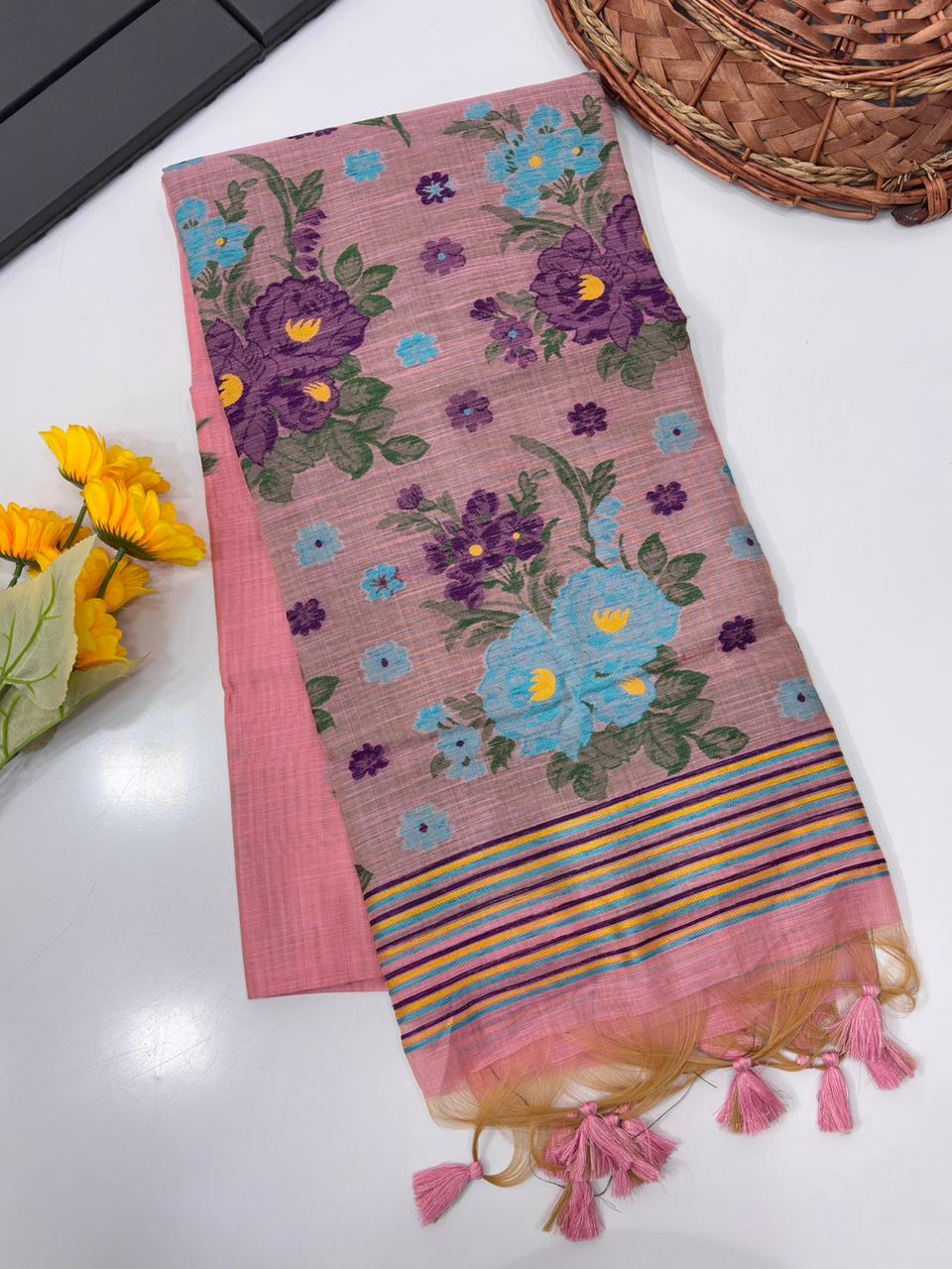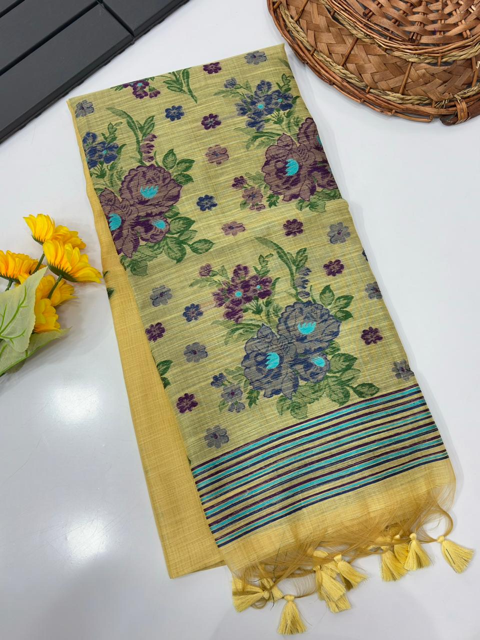Fabric: Premium Soft Muga Cotton Saree With Meena Weaving Floral Design Jamdani Pallu & All Over Resham Weaving Buttas With Fancy Tassels And
