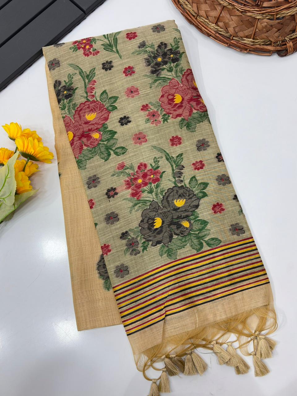 Premium Soft Pure Muga Cotton Saree(6 Pc Set)