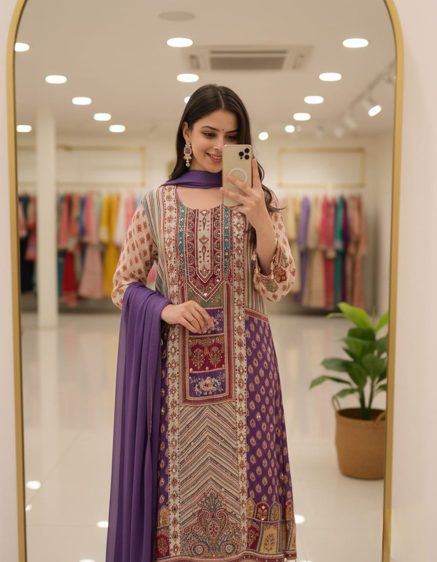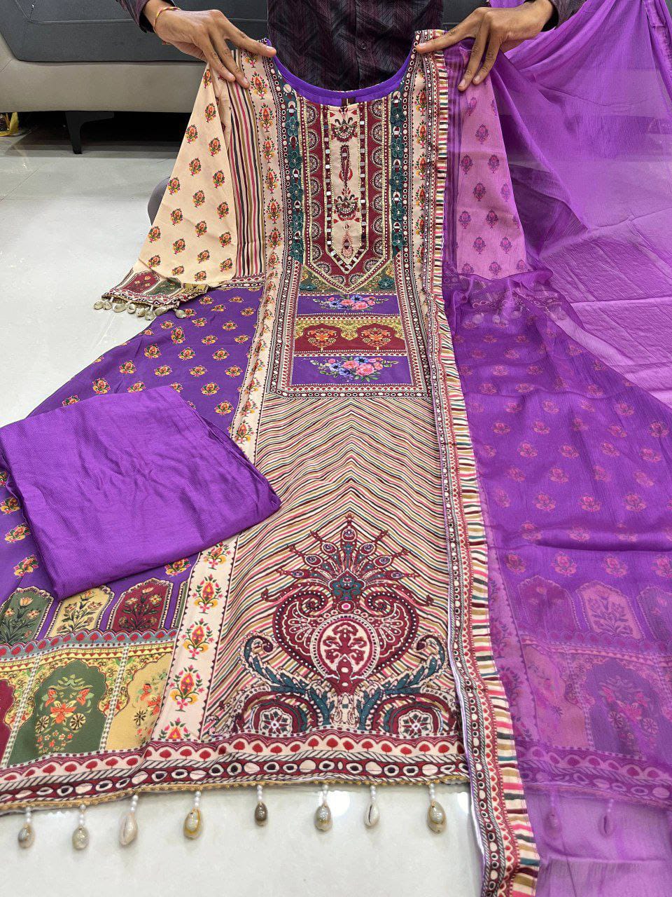 TYAP – Ready mate Weight – 500 GM UNDER Full Beutiful Shiffon Duppta border less Inclusive: (3 piece)TOP & Plazo + DUPPATA |