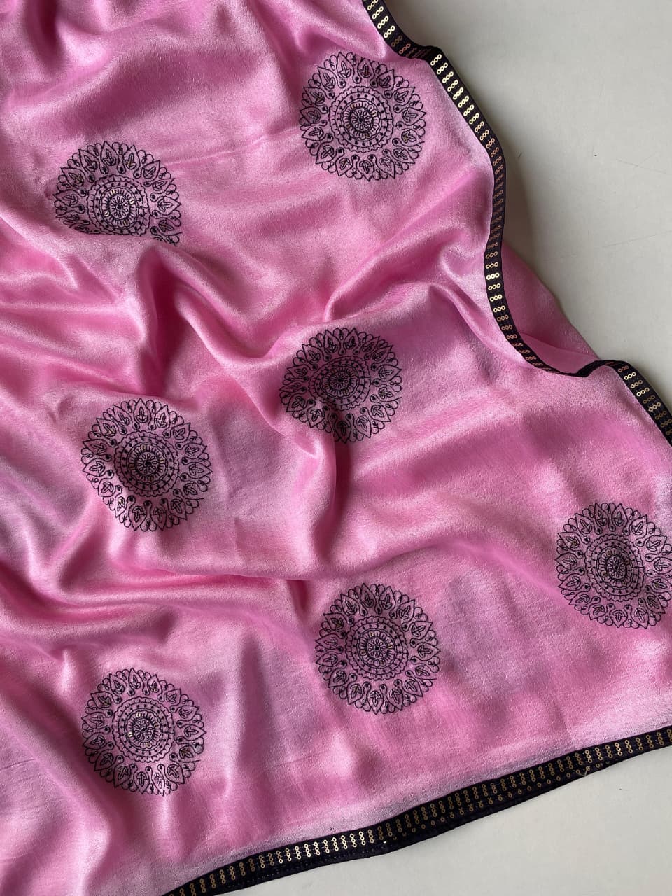 | Fabric: | Pure crush fabric saree with beautiful black thread embrioded buttas all over saree with |
